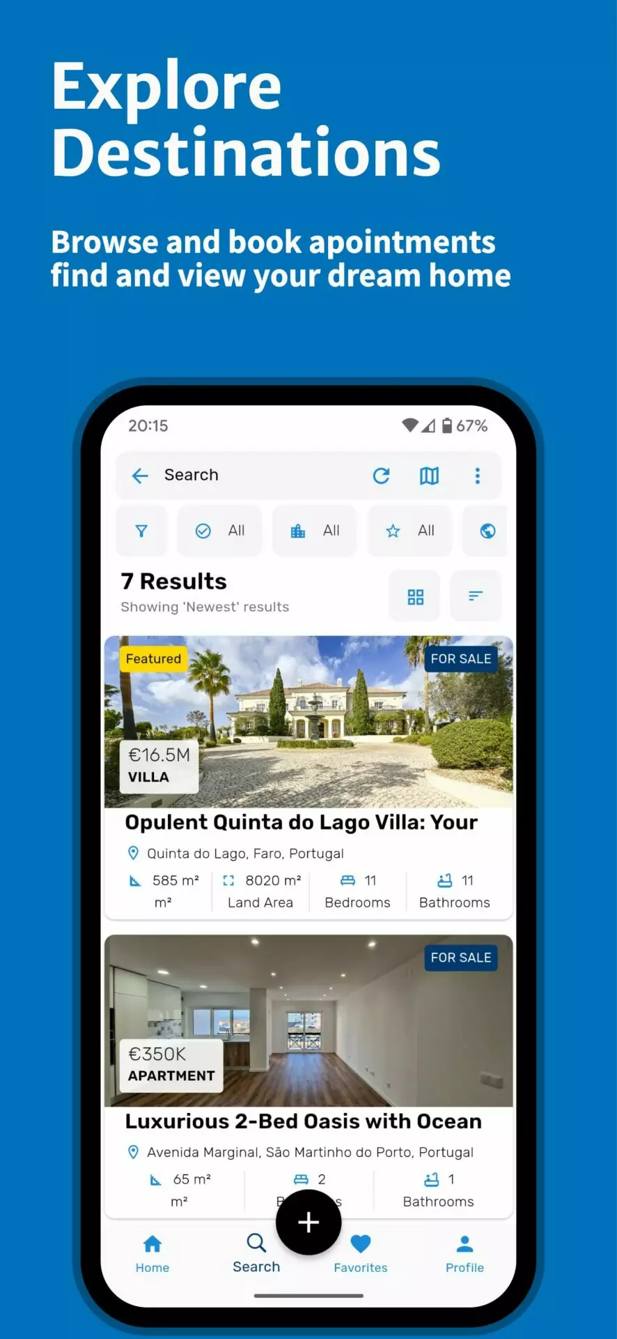 Find your new dream house, select what your searching for and view all newly added real estate properties for sale or rent in Europe!