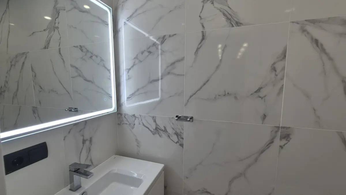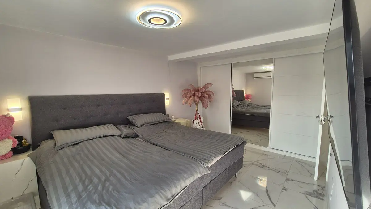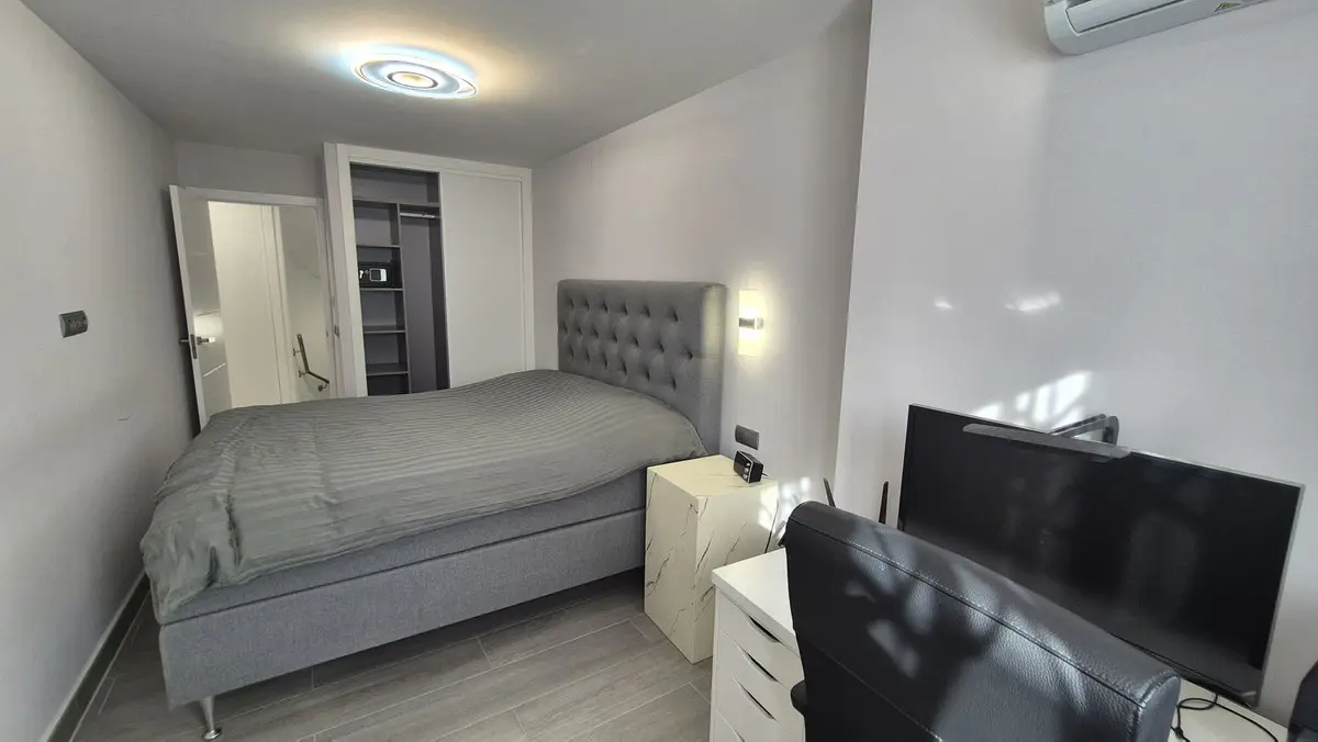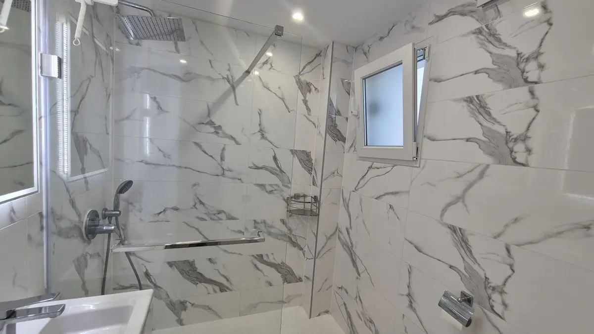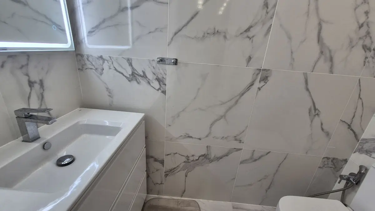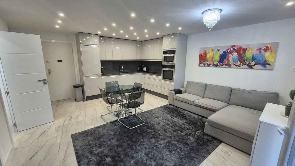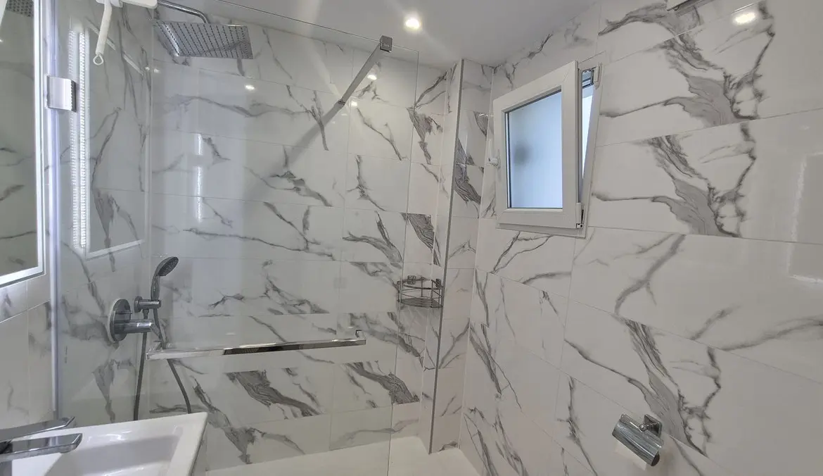 The bright and spacious living area welcomes you with premium marble floors and underfloor heating, creating a warm, sophisticated ambiance year-round. The open-plan design flows seamlessly into a state-of-the-art kitchen featuring sleek Cosentino countertops and top-quality Miele appliances, ideal for culinary creativity or casual entertaining. Step outside onto your private terrace and enjoy peaceful breakfasts, sunset dinners, or relaxing afternoons in the sun.