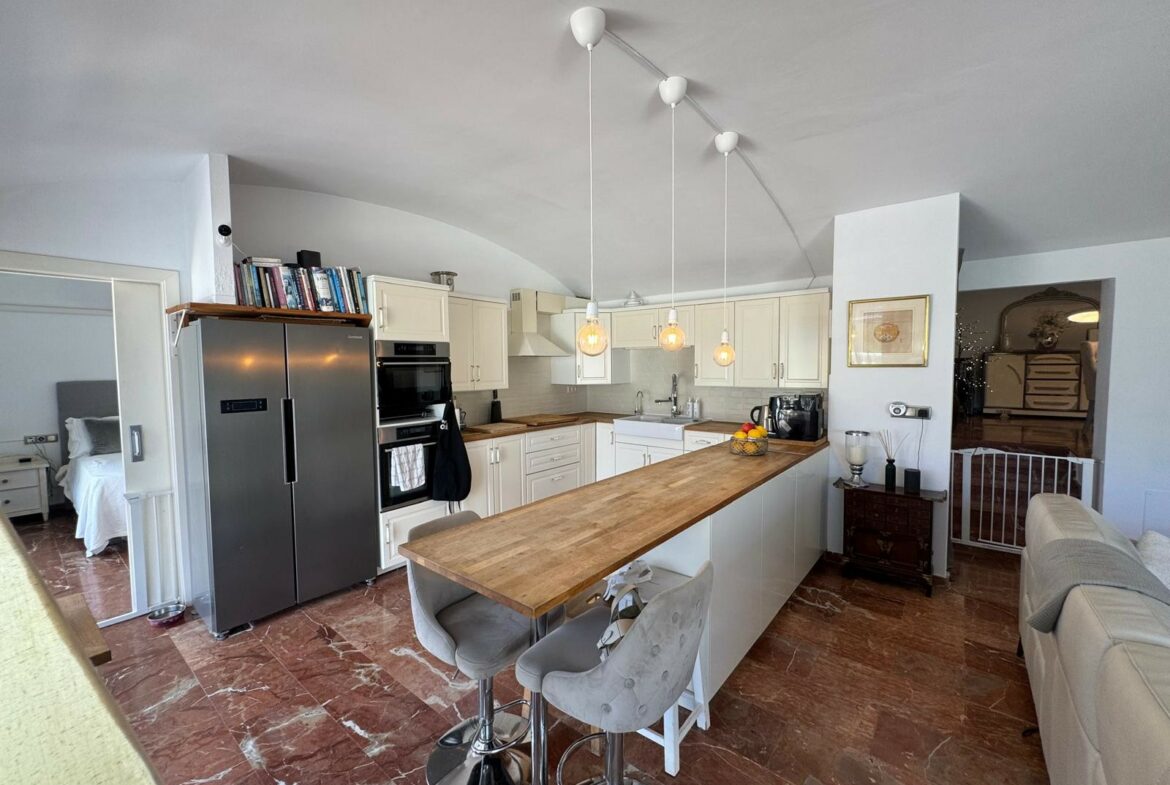 Step inside, and you’ll be greeted by a spacious living area that flows seamlessly onto the terrace, effectively extending your living space. The well-appointed open-plan kitchen is a dream for anyone who enjoys cooking, offering ample worktop space and a cozy raised dining area, making it the perfect spot to gather with loved ones.
