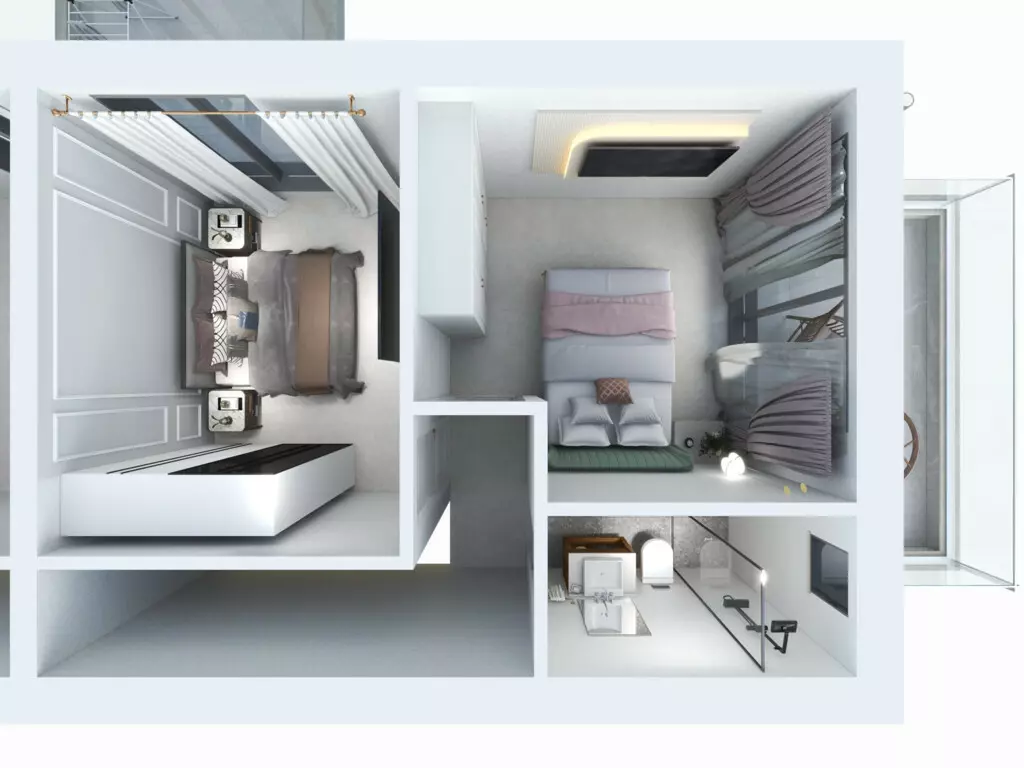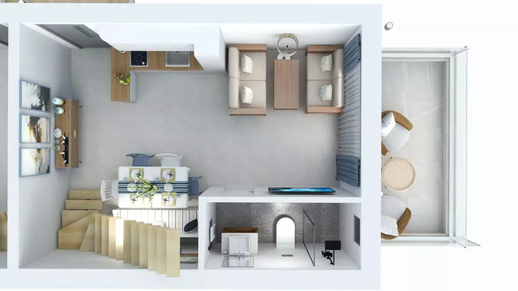The first floor comprises a living room that seamlessly integrates with the kitchen. There is also a shower WC conveniently located on this level, ensuring comfort and accessibility. Moving to the loft area, you’ll find two bedrooms, ideal for accommodating family or guests.