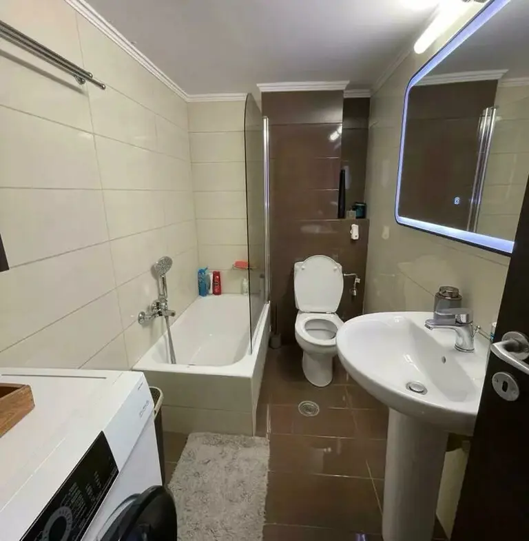 The apartment comes equipped with air conditioning and heating, making it suitable for year-round living conditions. Essential furniture will be included in the sale, which simplifies the move-in process for potential buyers.