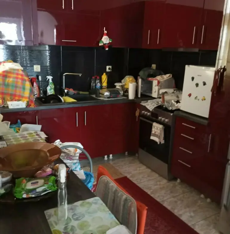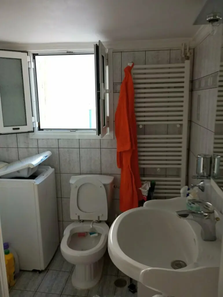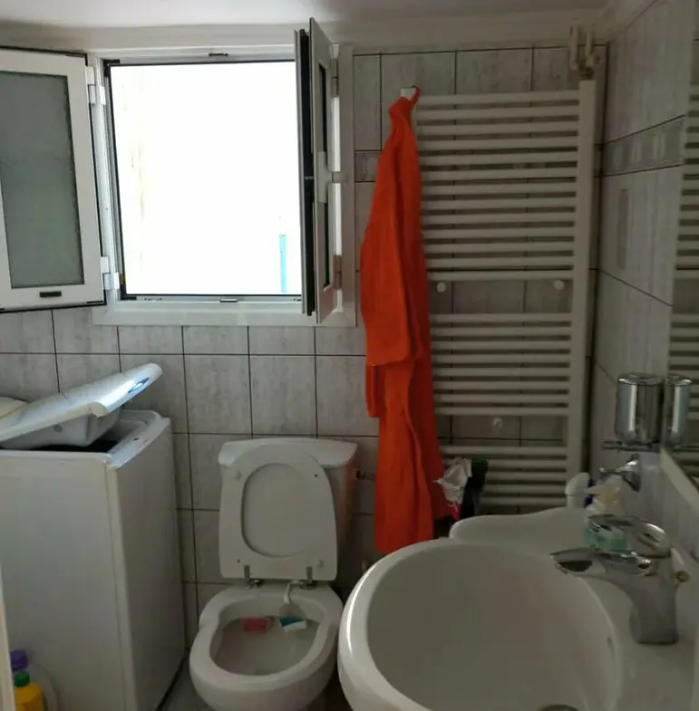 Moving to the first floor, you will find a layout that includes one bedroom, a living room with a kitchen, a bathroom, and a WC. This level offers essential living amenities for residents.