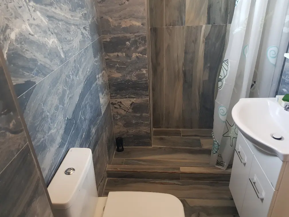 The ground floor features a living room integrated with a kitchen area, along with a shower and WC. This layout offers practicality for everyday living. Moving to the first floor, there are three bedrooms and a bathroom, providing ample space for family or guests.