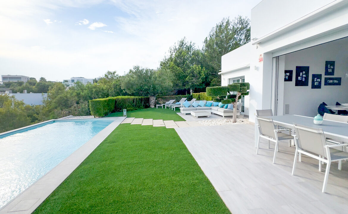 The property includes a terrace complemented by a garden and a private swimming pool. These outdoor spaces enhance the villa’s appeal, offering options for leisure and relaxation. The swimming pool serves as a focal point for outdoor activities, while the garden provides a natural environment for residents to enjoy.