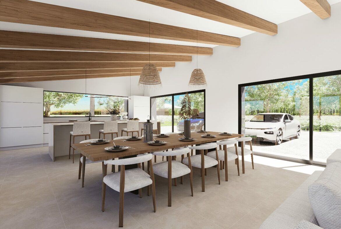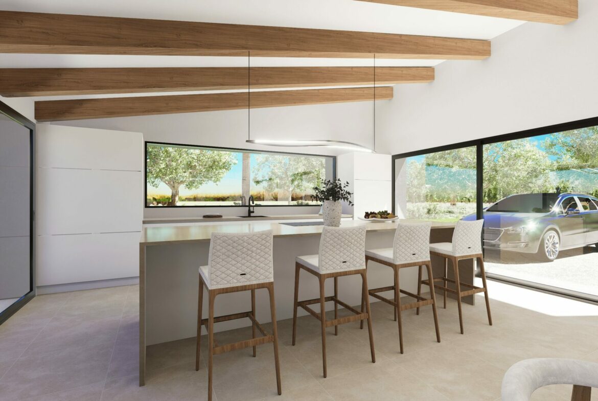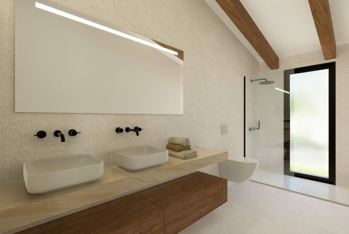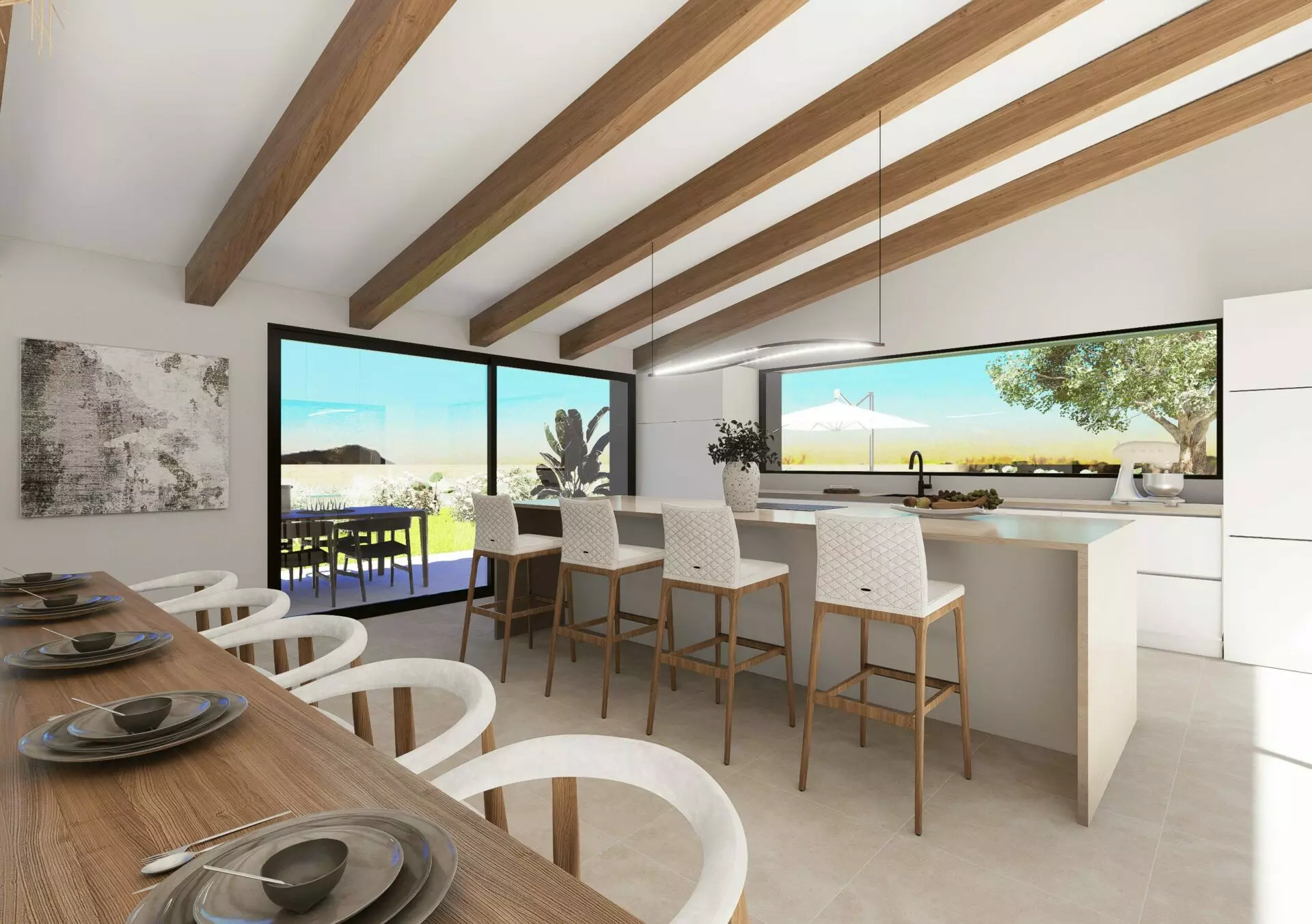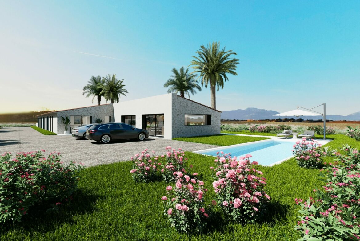 The approved building permit enhances the potential of this plot, enabling immediate construction without delays. Designed plans include a four-bedroom, four-bathroom home that also features a guest toilet. The layout is centered around an open-plan kitchen, dining, and lounge area that provides views of a 35 m² swimming pool. Additionally, the project includes a 134 m² basement garage designed to accommodate three vehicles.