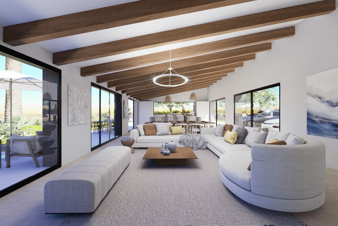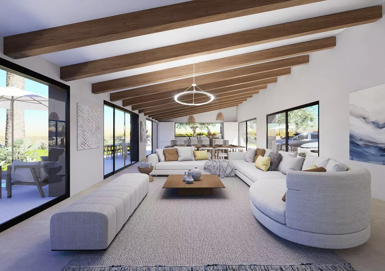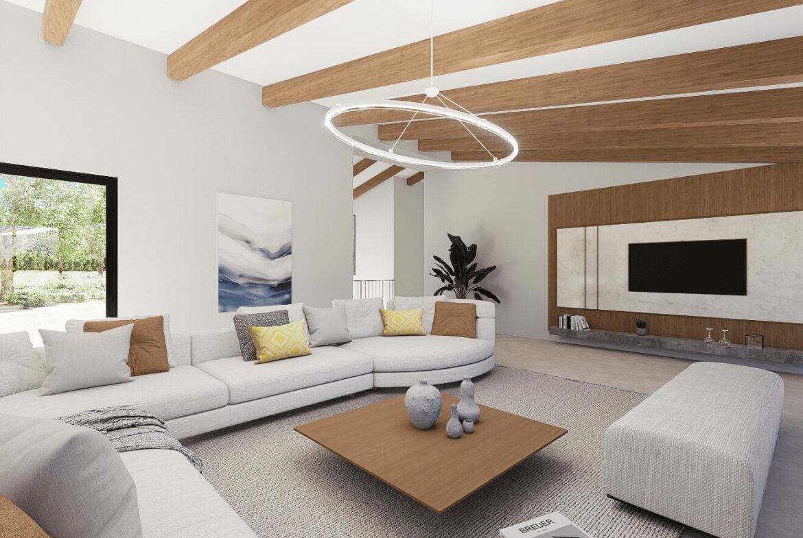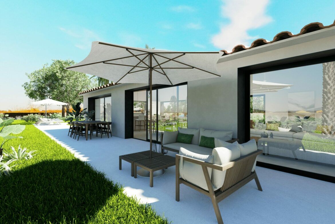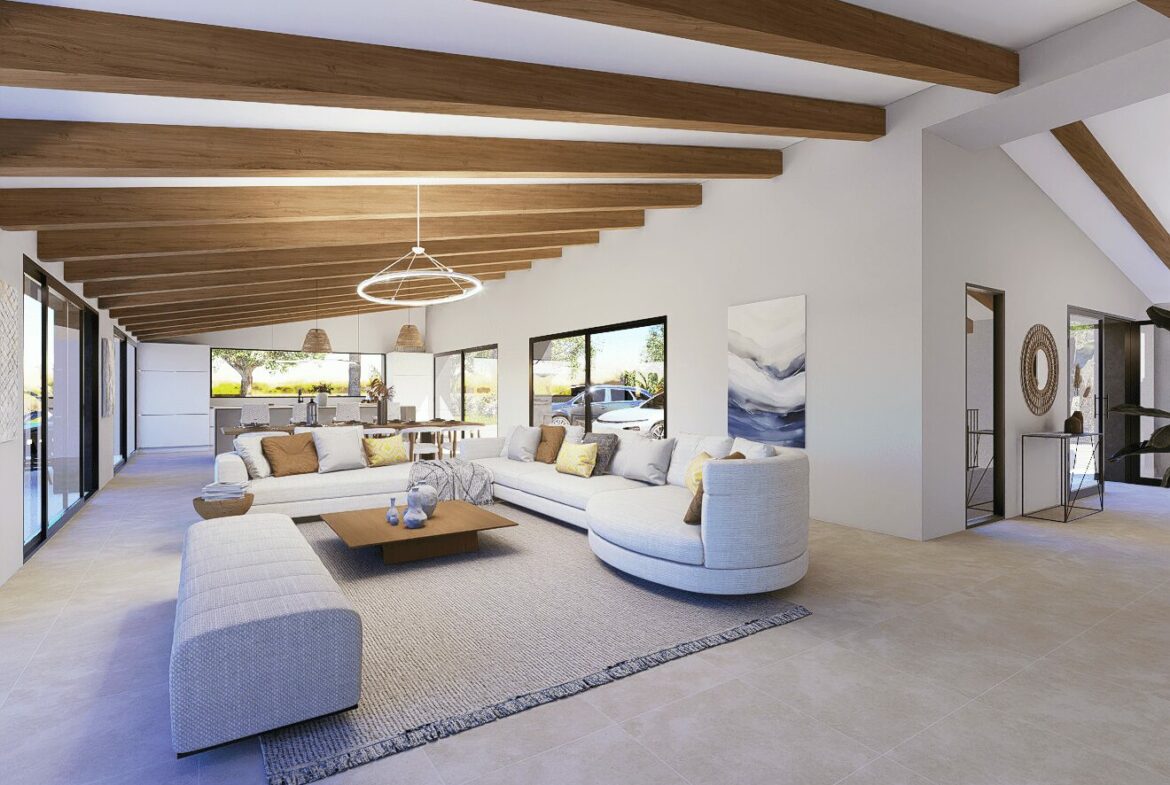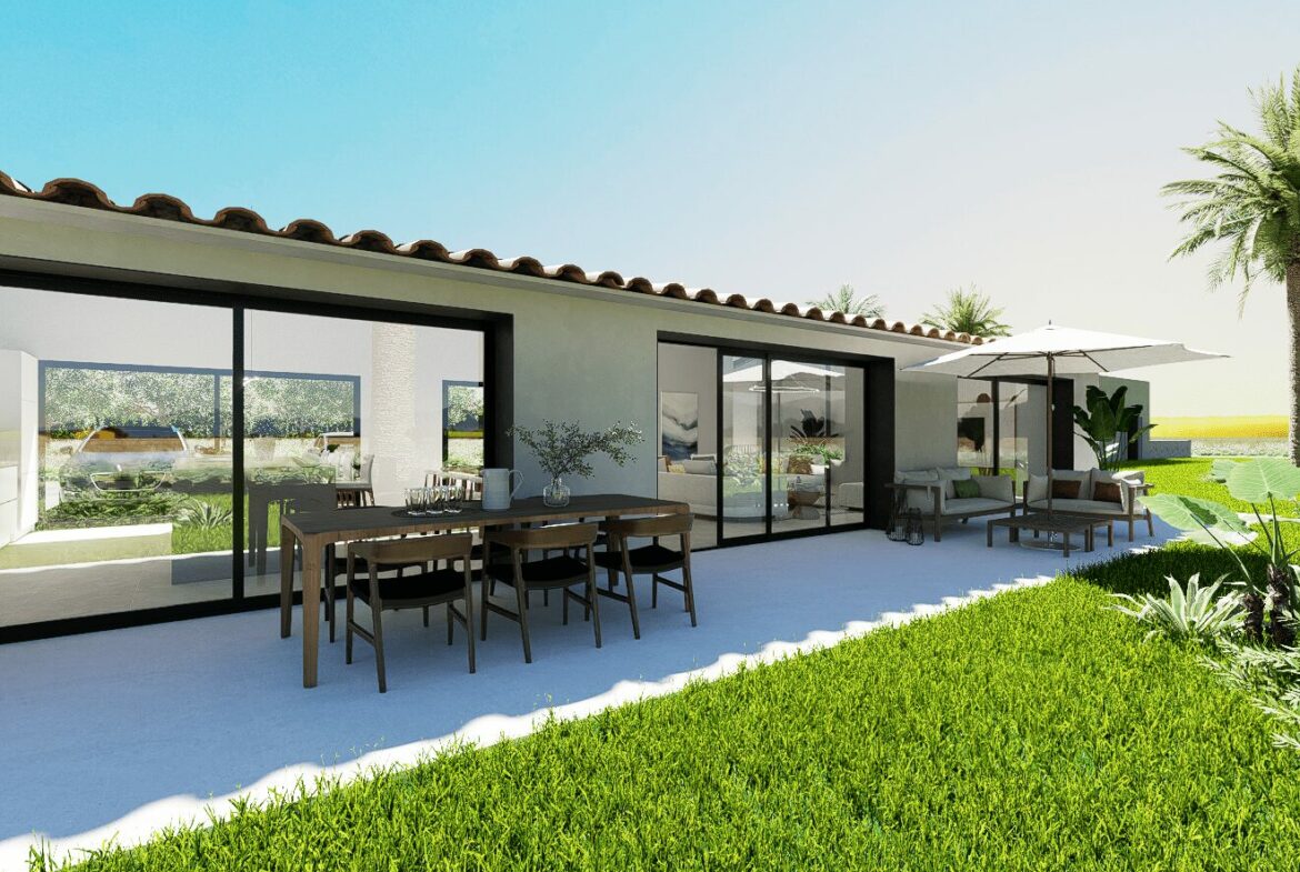 The approved building permit enhances the potential of this plot, enabling immediate construction without delays. Designed plans include a four-bedroom, four-bathroom home that also features a guest toilet. The layout is centered around an open-plan kitchen, dining, and lounge area that provides views of a 35 m² swimming pool. Additionally, the project includes a 134 m² basement garage designed to accommodate three vehicles.