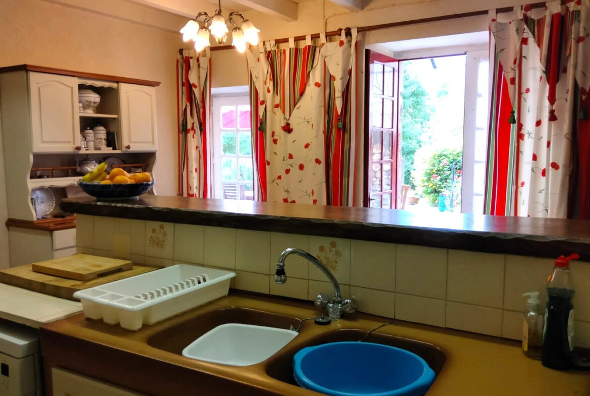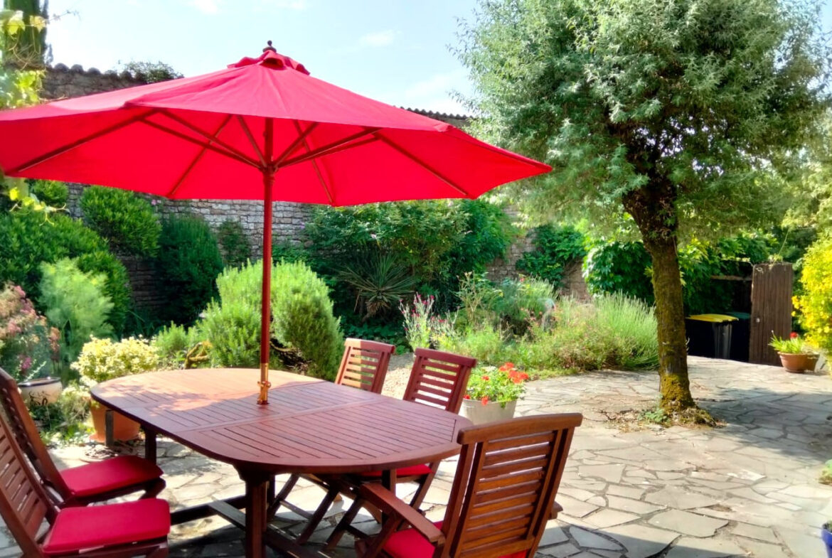 The cottage is arranged around a delightful courtyard featuring a private Mediterranean-style garden. This area offers various mature plants and shaded spots, ideal for outdoor dining. The layout encourages you to relax and enjoy the fresh air while surrounded by nature’s beauty.