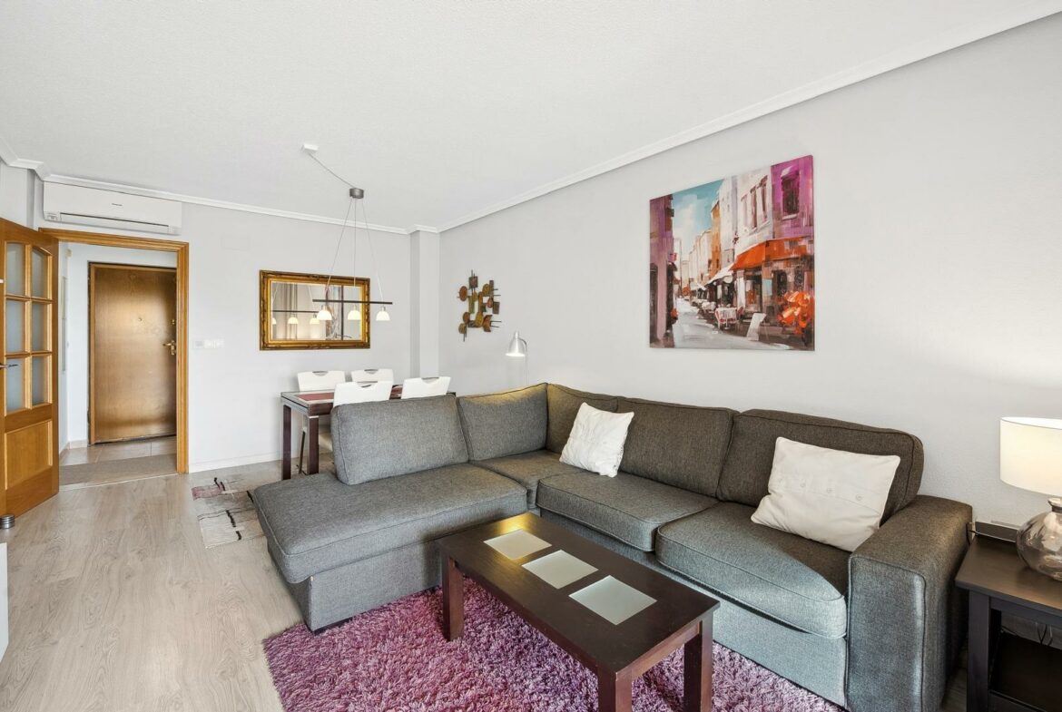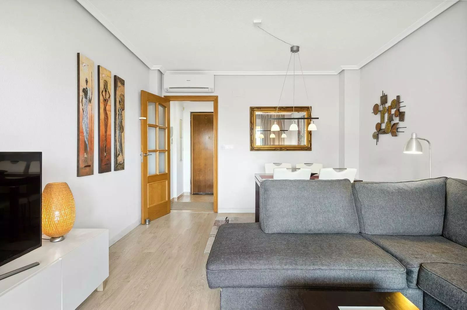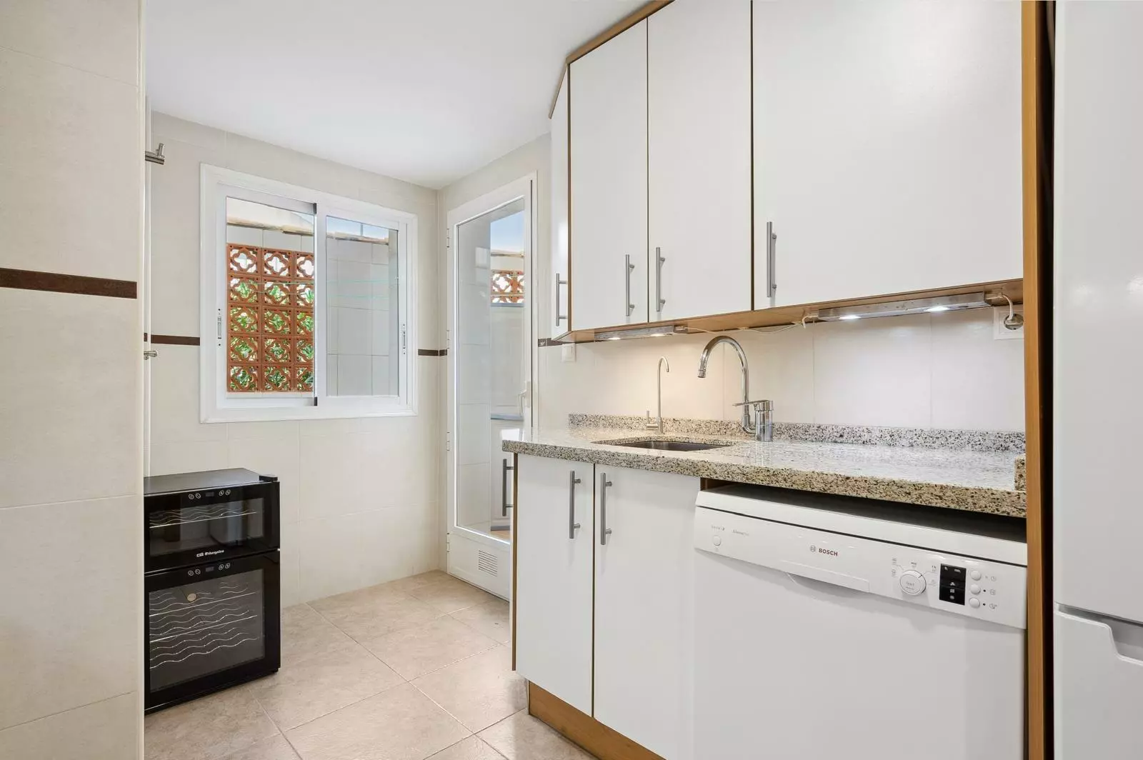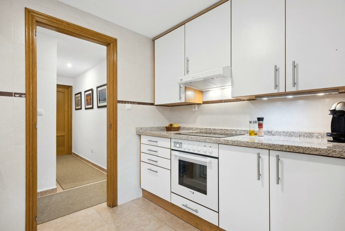 Access the private terrace from the living room, where you can enjoy sea views. This outdoor space serves as an excellent spot for relaxation or entertaining, taking advantage of the Costa Blanca climate. The terrace is large enough for outdoor furniture, creating a welcoming area to enjoy the outdoors.