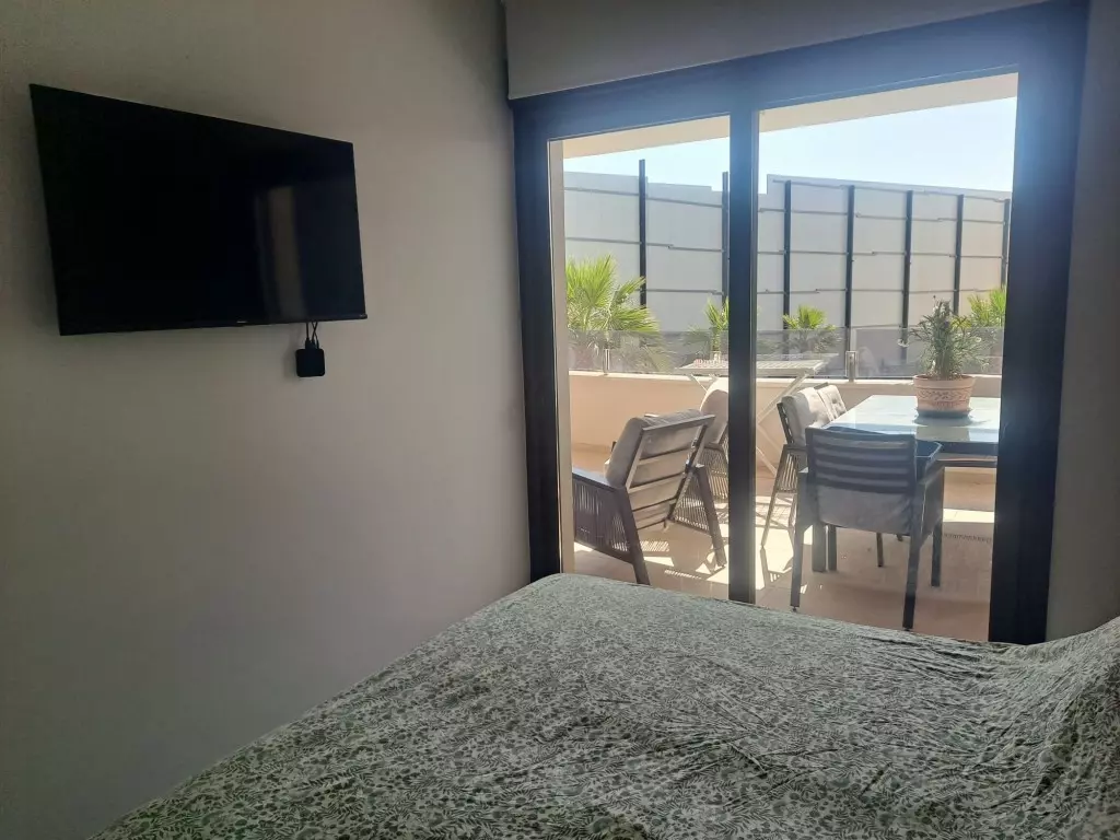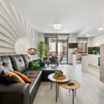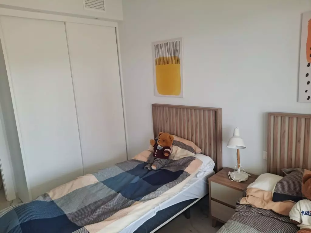 This apartment covers a total surface area of 98.37 m², featuring an open and functional layout. It includes two bedrooms and two bathrooms, with one being en-suite. The open-plan kitchen is fully equipped, facilitating meal preparation and entertaining. The living-dining room provides ample space for family gatherings or socializing with friends.