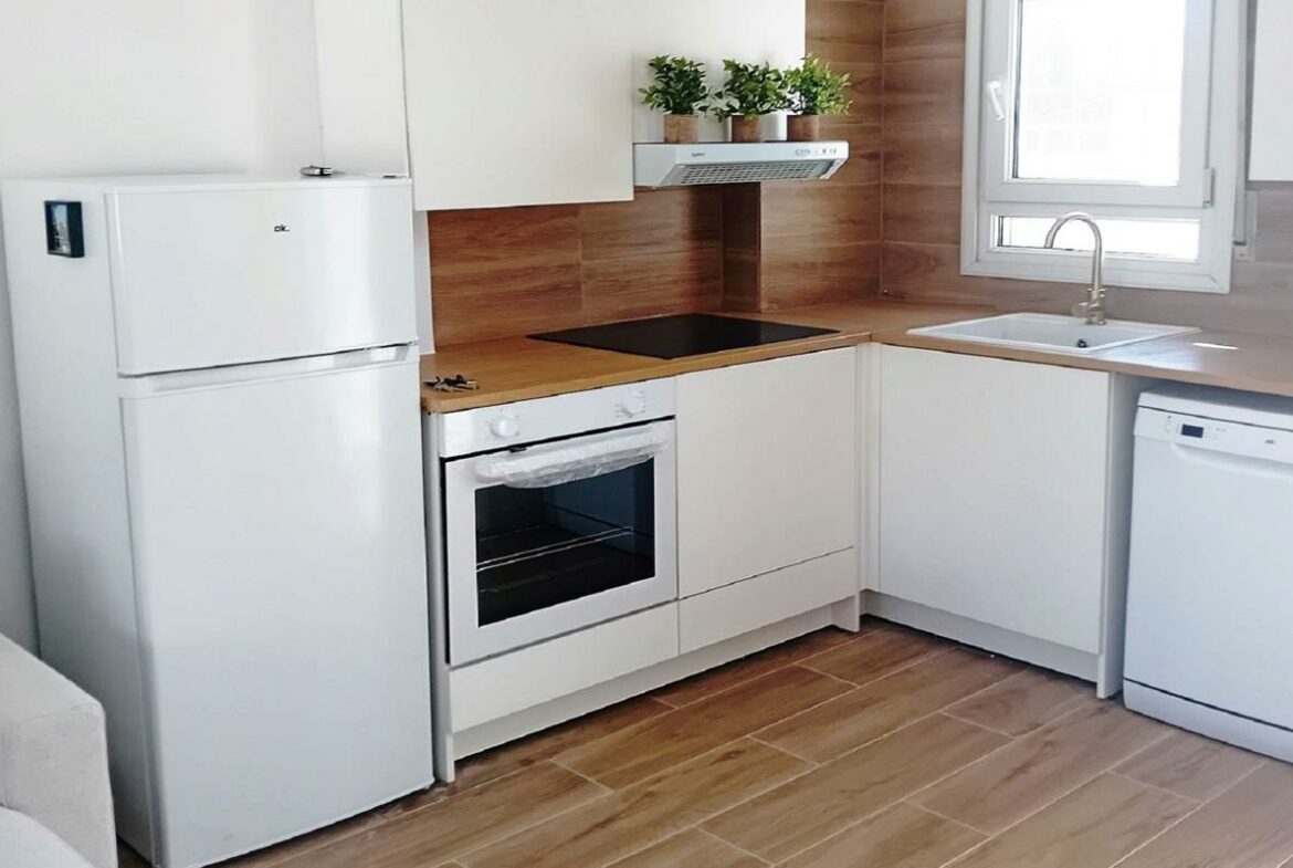 This townhouse is a three-floor unit that has undergone a significant renovation earlier this year. With a total area of approximately 65m2, it offers a practical layout, featuring an open-plan design for the living room, dining area, and kitchen. This setup allows for smooth movement throughout the ground floor.