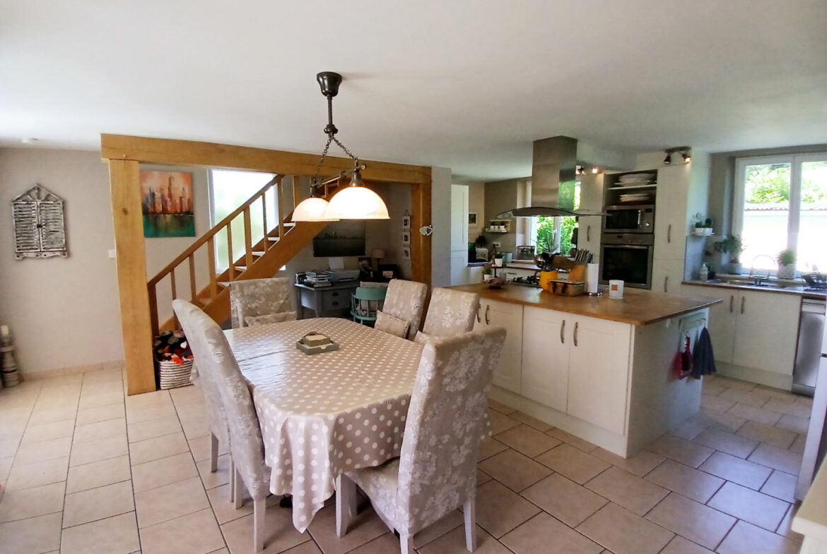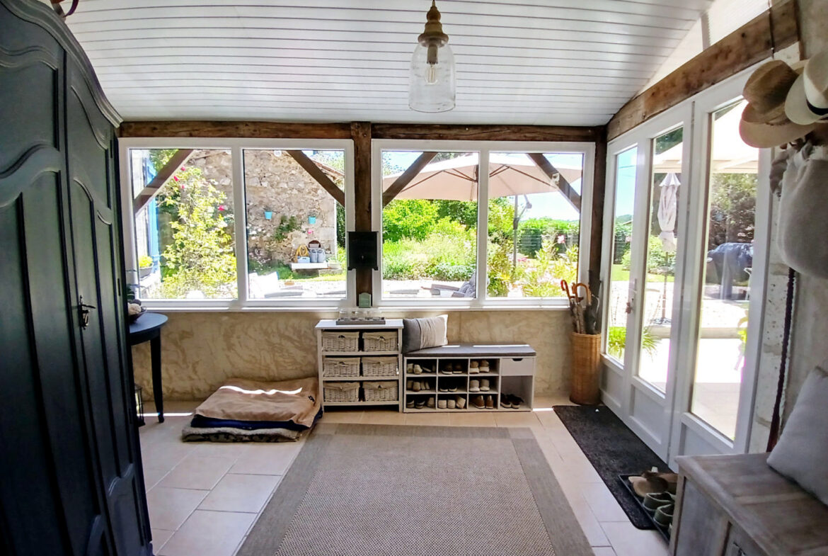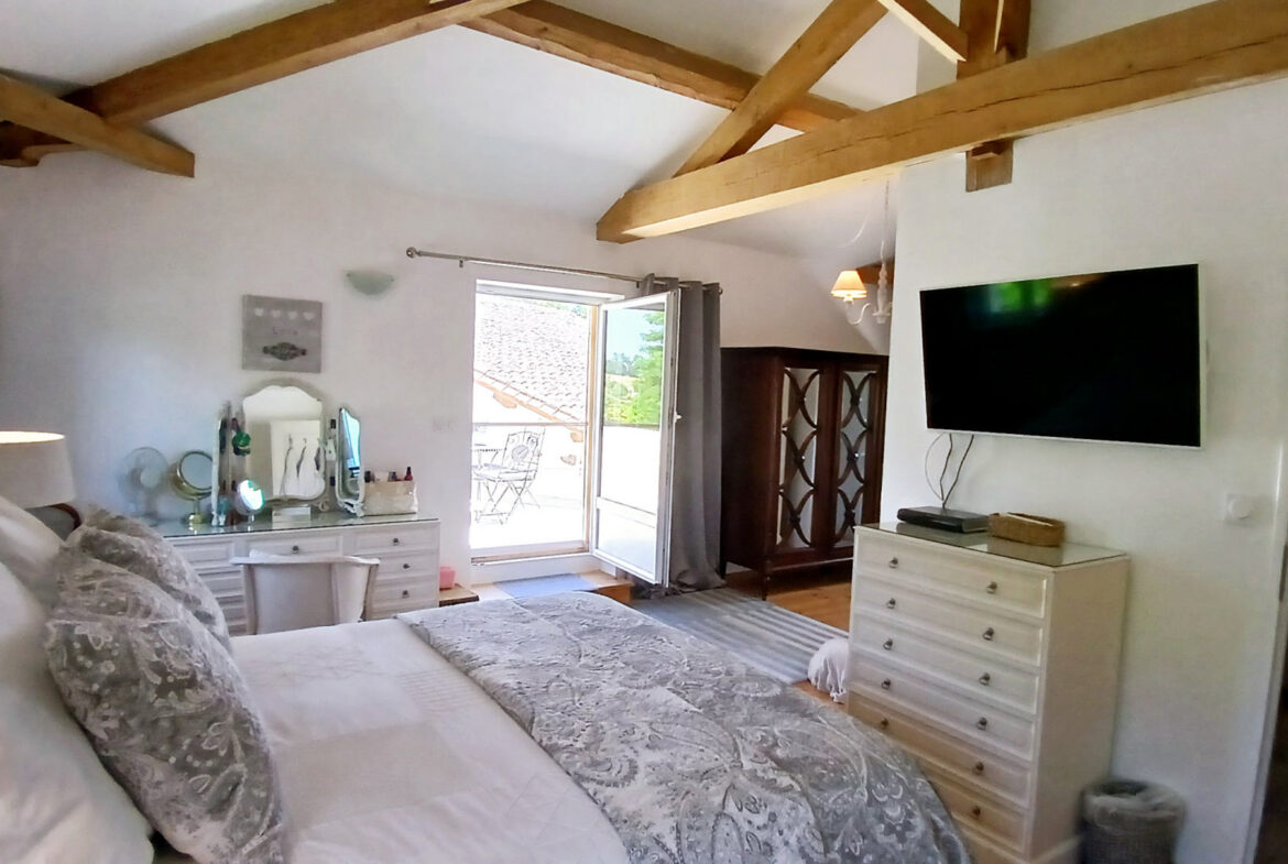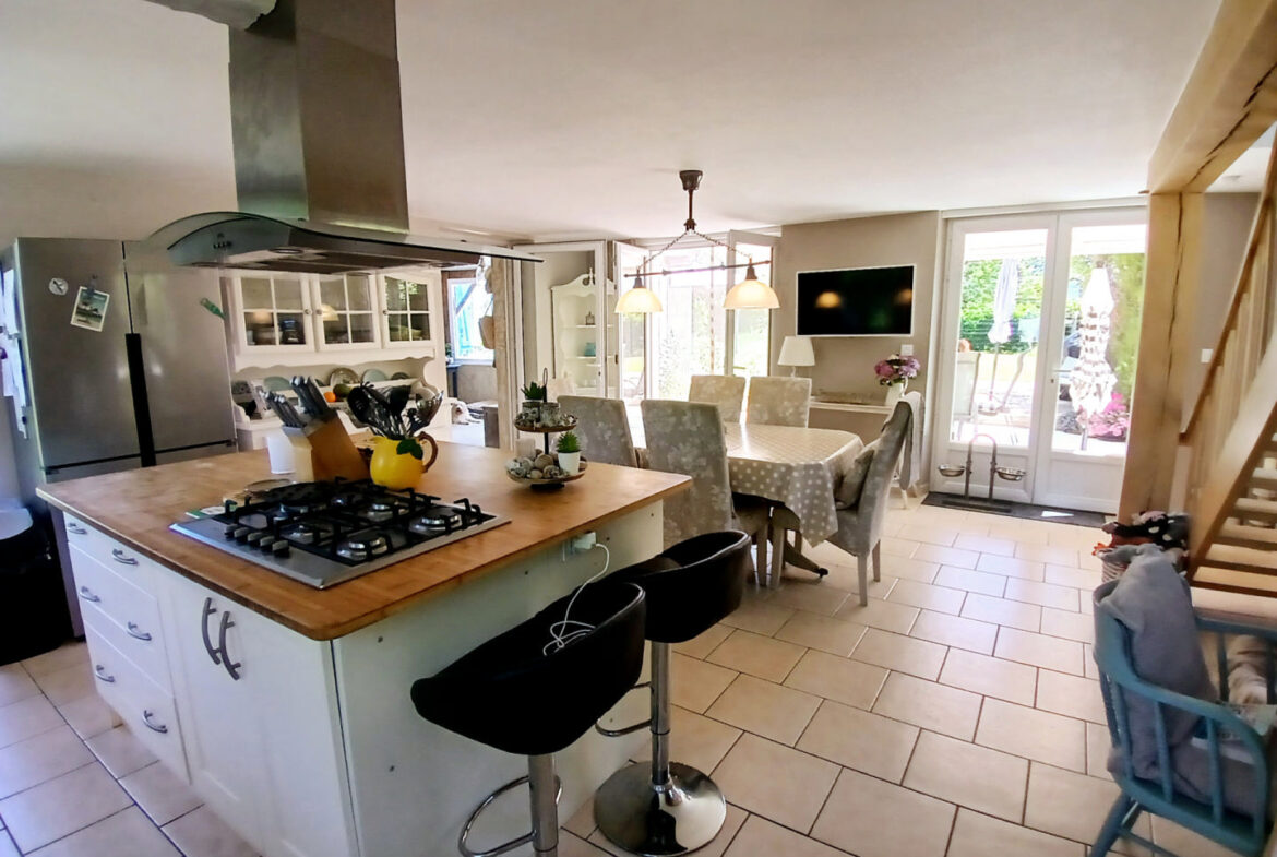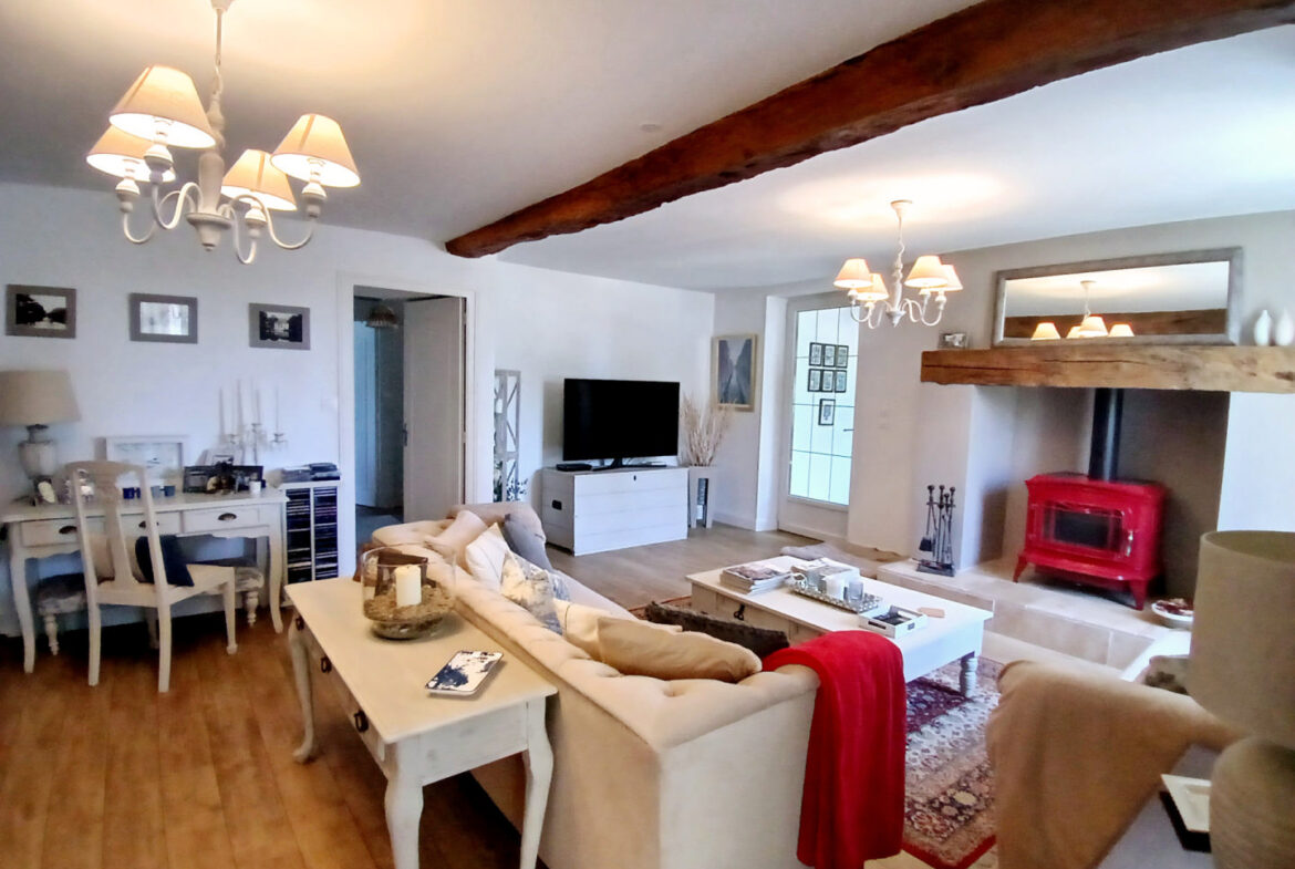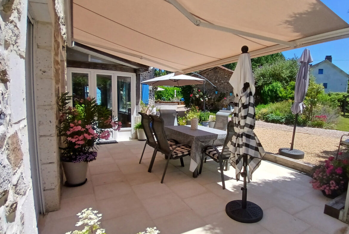 Connected to the original structure, there is a large double-glazed conservatory. Behind it, you will find a utility room along with an entrance to the extended part of the house built around ten years ago. This modern addition maintains a cohesive look with a stone exterior. Inside, it features an open-plan kitchen and dining area that has patio doors leading to a terrace. A staircase leads up to the master bedroom, which includes an en-suite bathroom and a rooftop terrace.