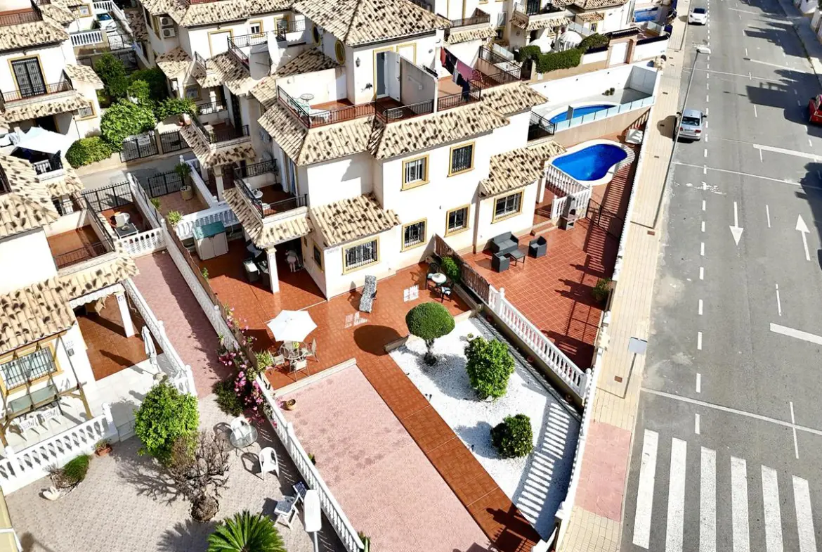 This villa is located on a 139 square meter plot, allowing for off-road parking, which adds an element of convenience. The front terrace is enhanced with retractable awnings, providing flexibility for outdoor activities throughout the year. The community pool is also a notable feature, perfect for those warm days when a swim is in order.