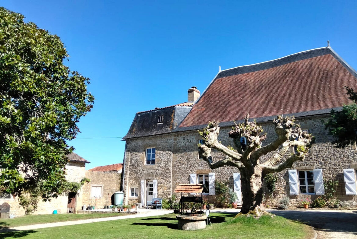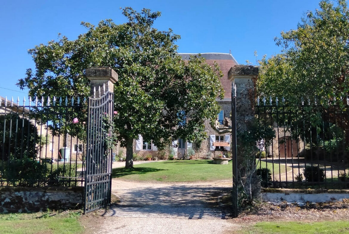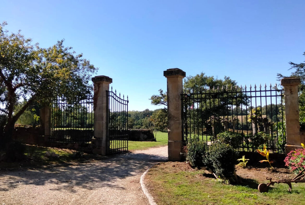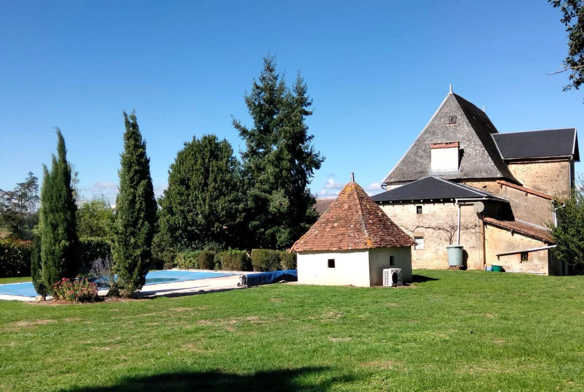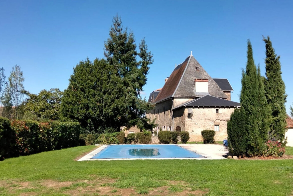 Located on a small, calm lane, this historic 17th-century manor house creates a striking first impression. The property features a tree-lined entrance and a circular courtyard surrounded by landscaped gardens. Outside, residents can enjoy a heated pool and panoramic views, along with outbuildings and a garden well. This unique offering provides numerous possibilities for its new owner.