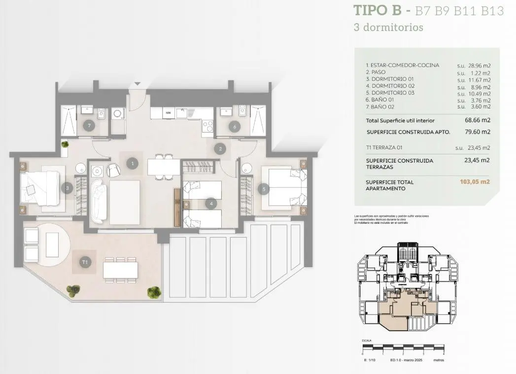 The complex boasts a large common area that features two swimming pools. One of these pools has a beach-type entrance, catering to all ages. A sun lounger area with artificial grass allows residents to relax by the pool, and a children’s play area ensures that families have a safe place for their kids to enjoy. Additionally, there is a paddle tennis court, bicycle parking area, and well-maintained garden areas that enhance outdoor living.