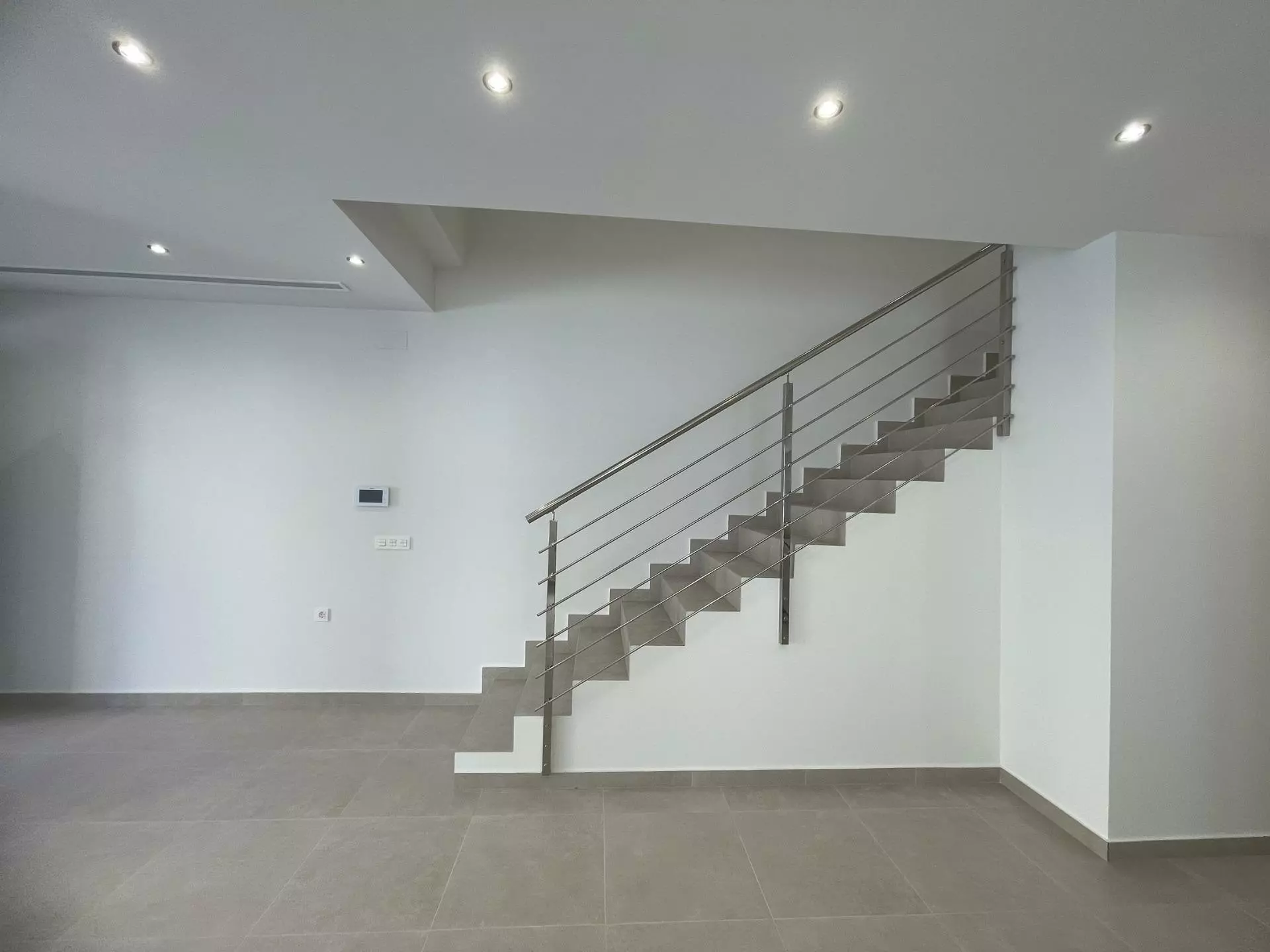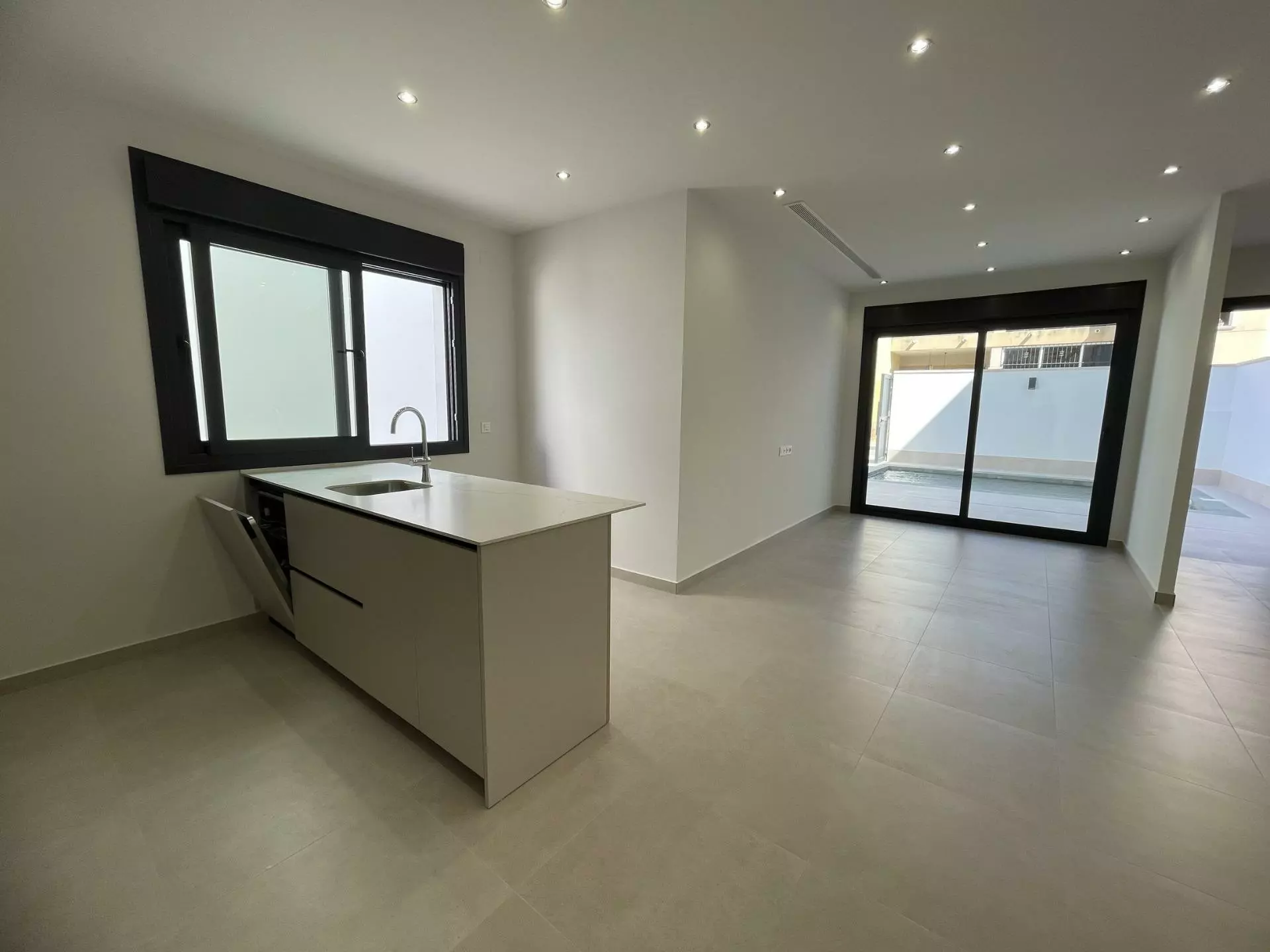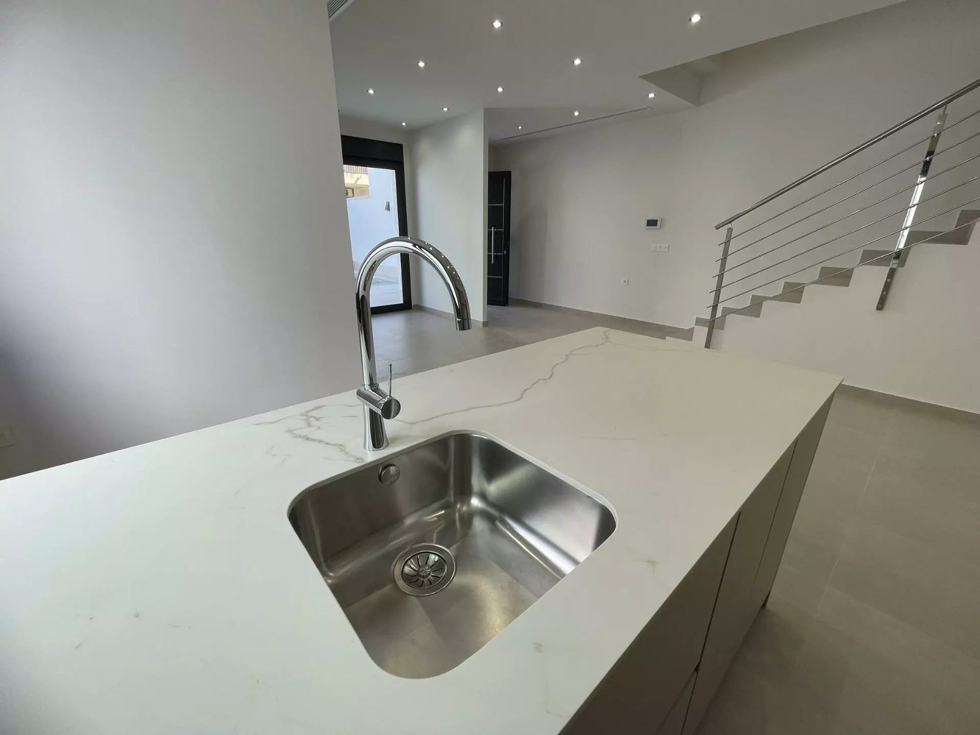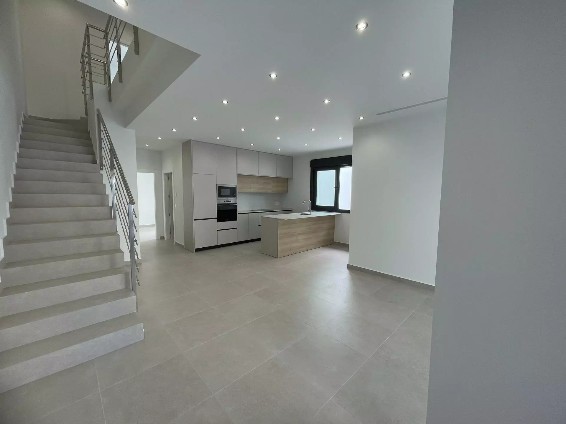 These newly constructed villas showcase a modern Mediterranean design that emphasizes both functionality and style. Each property spans two floors, featuring bright interiors that connect effortlessly to outdoor living spaces. The villas comprise three bedrooms and three bathrooms, an open-plan kitchen fitted with integrated appliances, and a living-dining area that leads directly to the terrace and garden.