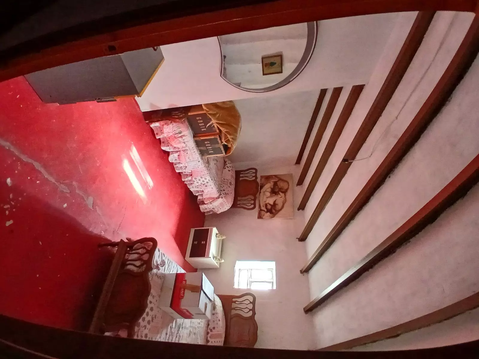 Attached to the main house is a garage and a storeroom that houses a large water deposit of 10,000 liters. This system ensures a consistent water supply for the property. Upstairs, there are four additional bedrooms, one of which has three doors. This room could be reconfigured into two double bedrooms or three single bedrooms, accommodating a total of six to eight bedrooms in the property.