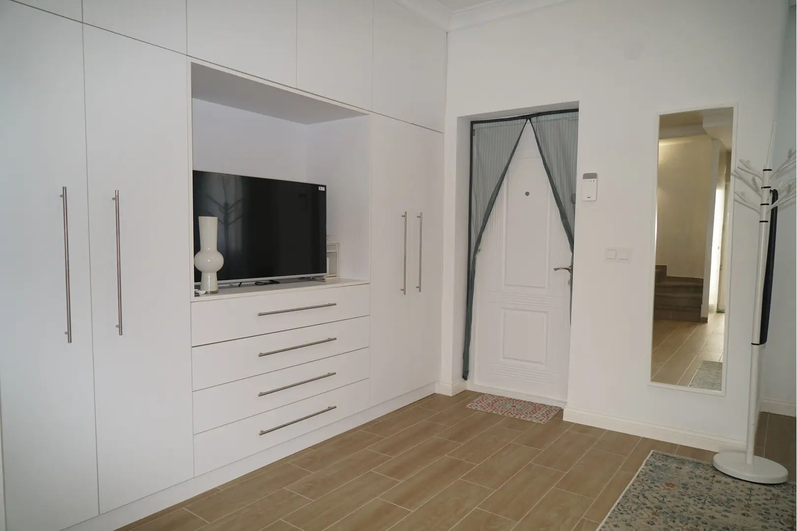 Moving to the second floor, there are three bedrooms, along with an additional bathroom. The terrace adds extra usable space, providing an area for outdoor activities or relaxation. This property has undergone complete renovation, which includes updated plumbing and a newly installed kitchen. Although some furniture has already been set up, there’s room for personal touch.