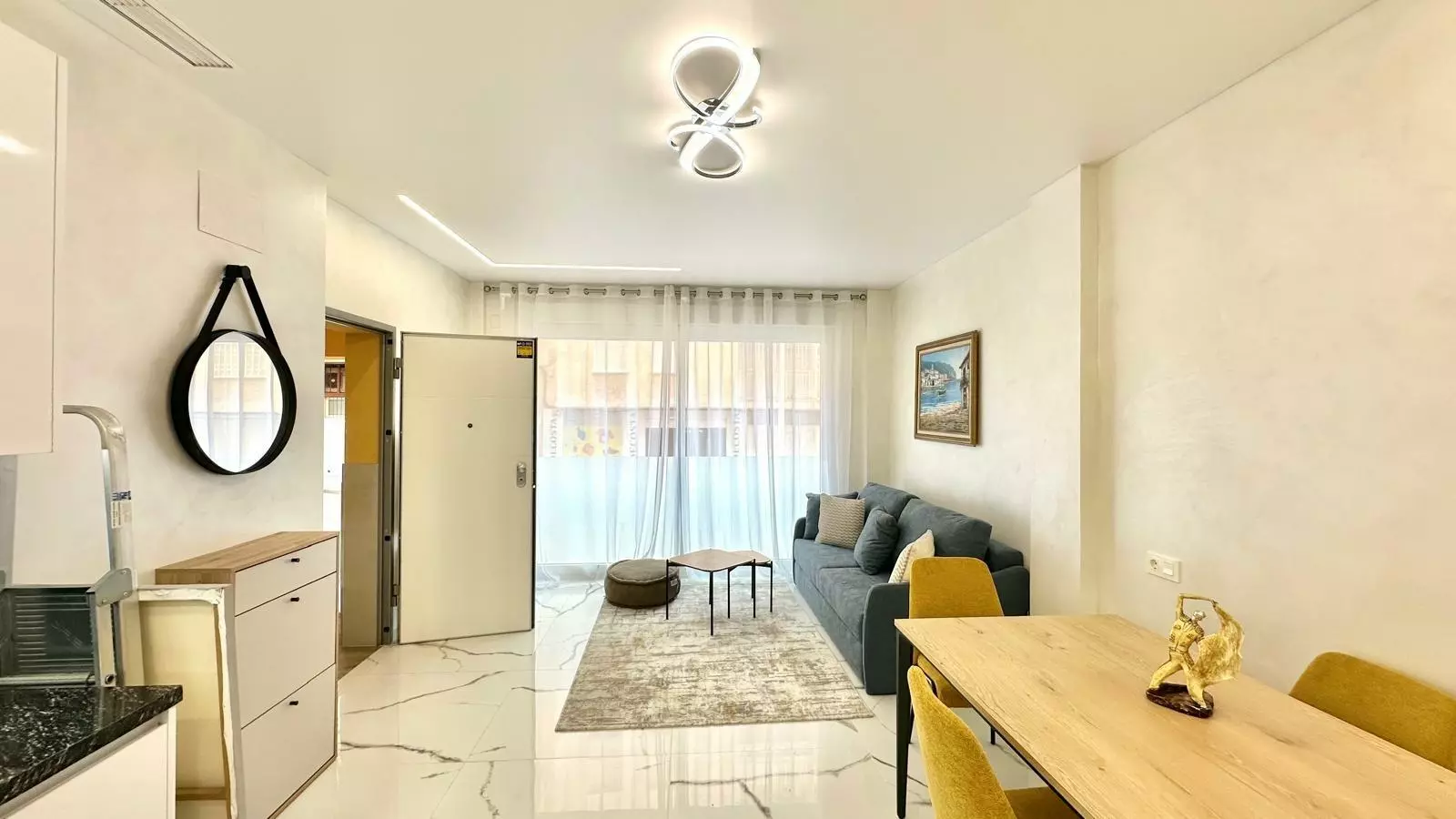 This apartment features a complete refurbishment that emphasizes both aesthetics and functionality. The property comes fully furnished, which means you can simply move in without extra investments in furniture or appliances. Everything included is new, ensuring that you will have a hassle-free transition into your new space.