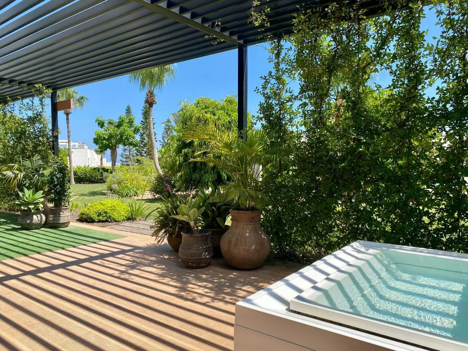 The kitchen is equipped with standard appliances and offers ample counter space for meal preparation. The living area connects directly to the outdoor terrace, providing a setting for relaxation or gatherings. Natural light is a prominent feature, enhancing the overall atmosphere of the property.
