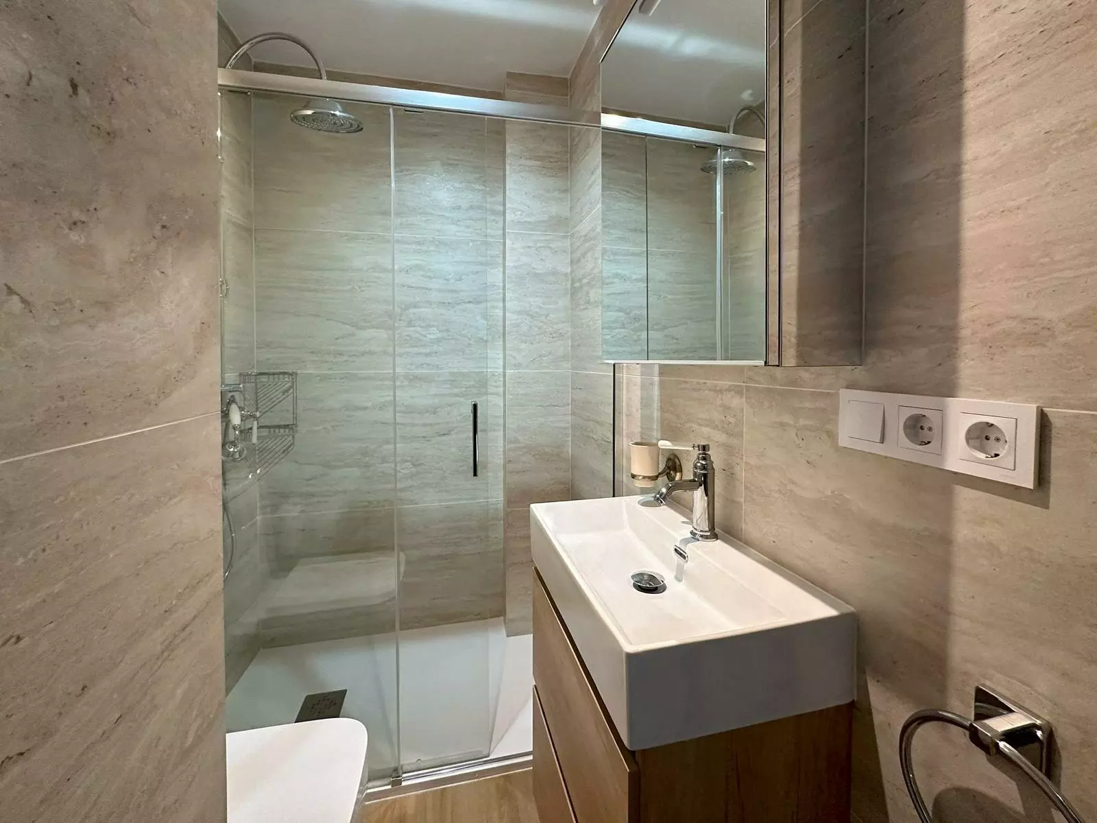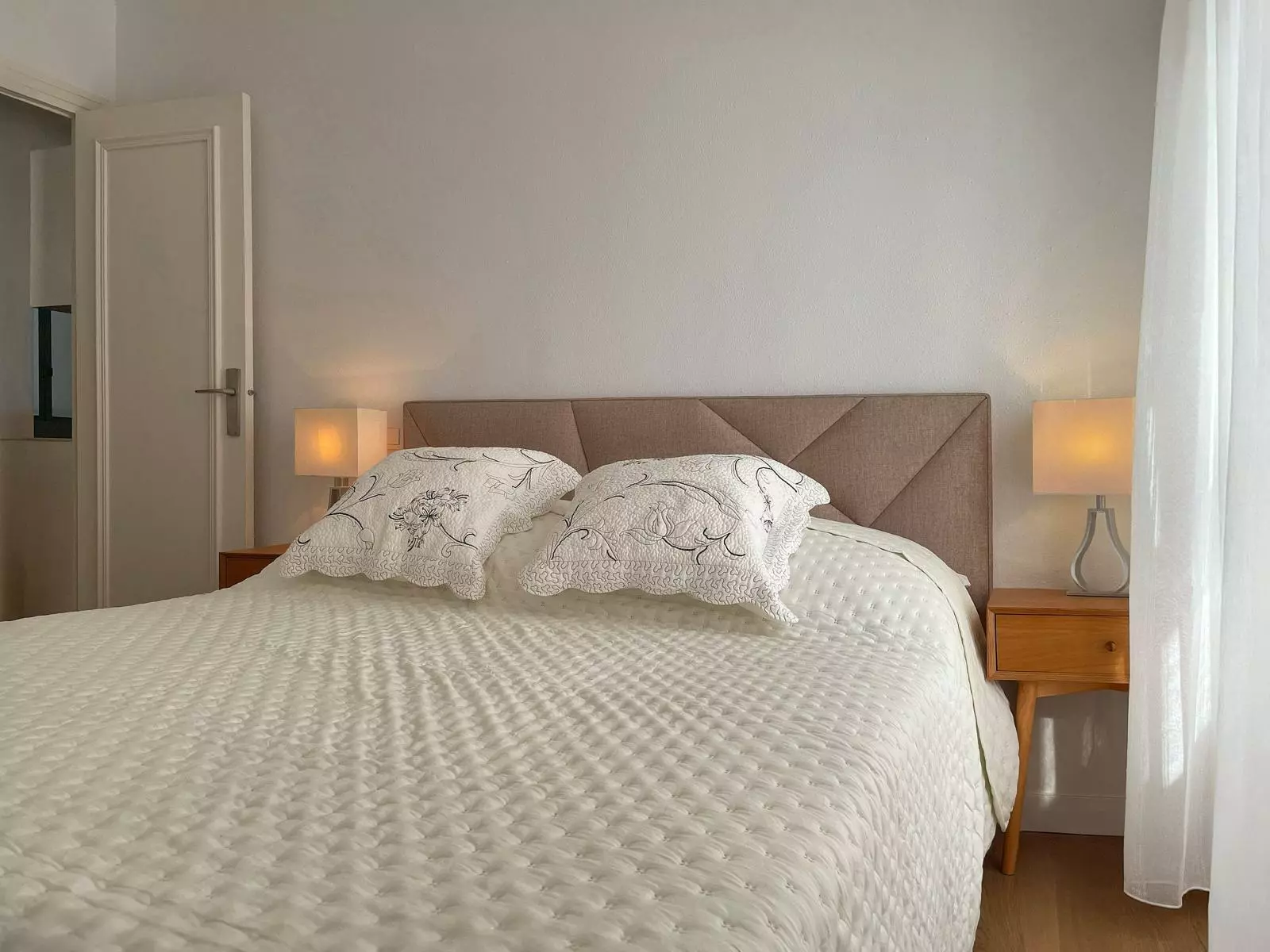 This apartment consists of three bedrooms. Two of these rooms are doubles, equipped with large 160×200 beds and substantial storage compartments. The third bedroom features a bunk bed, suitable for various living arrangements. Additionally, the apartment contains two bathrooms, each featuring spacious showers.
