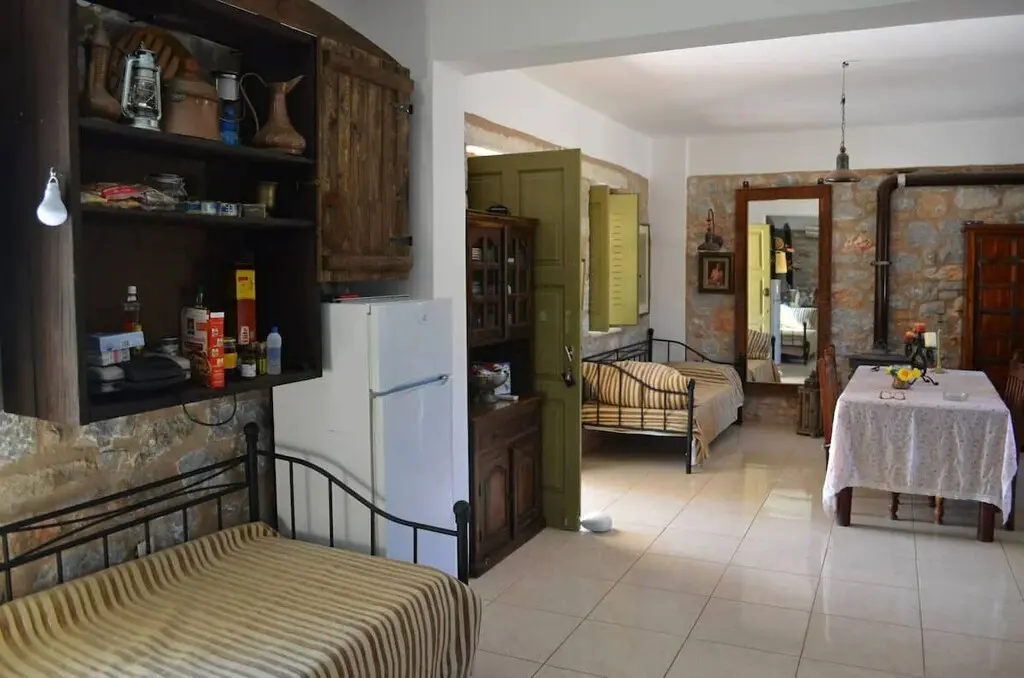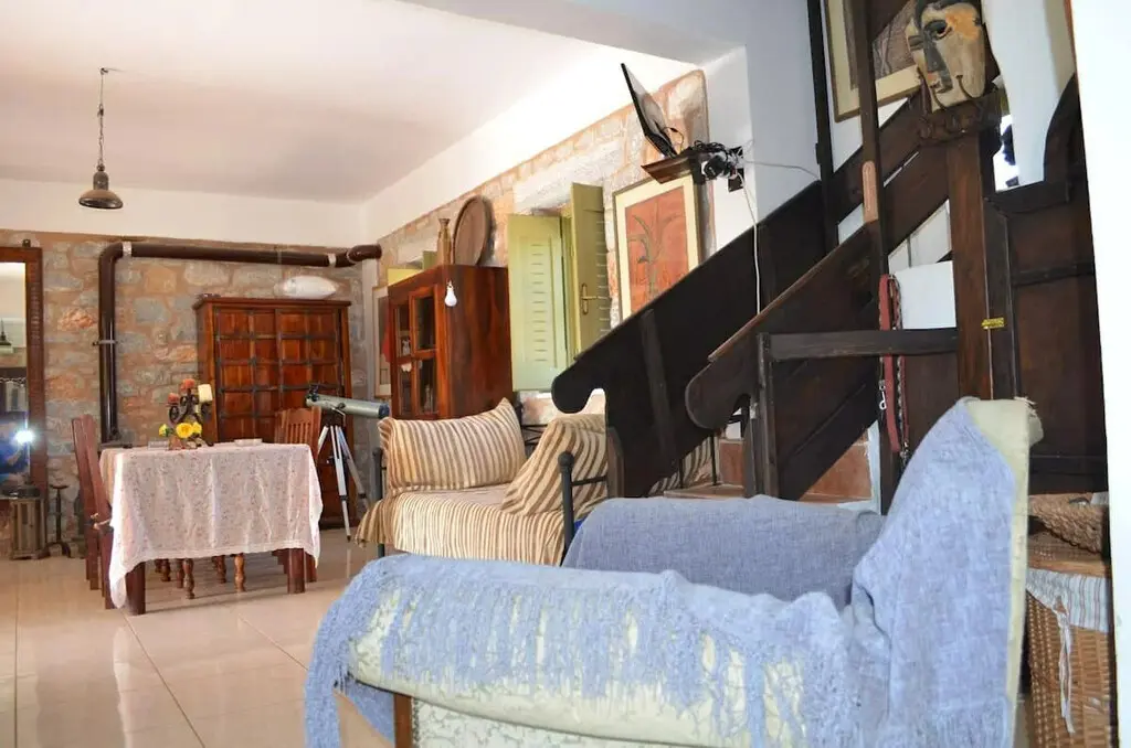 This building for sale in Peloponnese offers a total area of 120 square meters, spread across two levels. The structure is designed to accommodate various living needs with separate spaces for different activities.