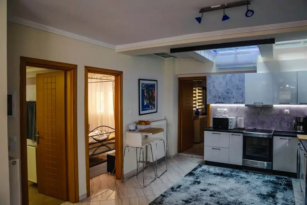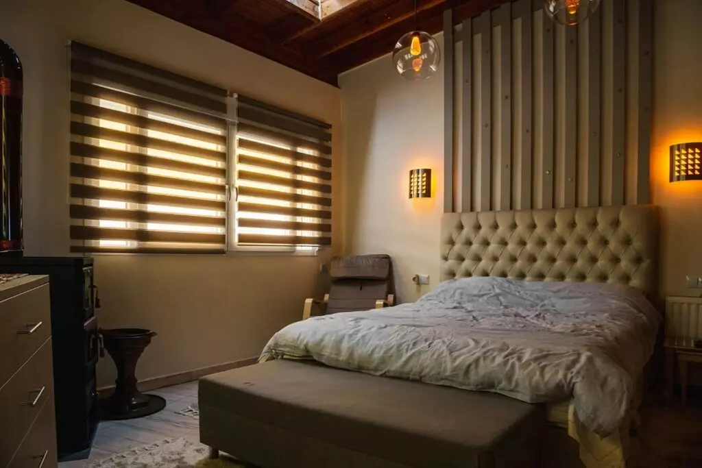 This apartment comes equipped with solar panels for water heating, an essential energy-efficient feature. For added warmth during colder months, a fireplace is present. The living space also includes air conditioning to maintain a comfortable temperature throughout the year.