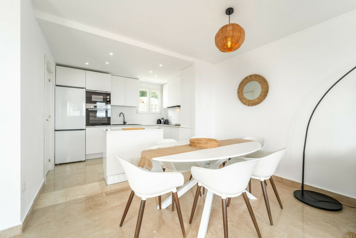 The property boasts a generously proportioned living space with an open-plan layout, which allows for seamless movement from the living area to a large, sunny terrace. This arrangement is ideal for families and those who enjoy entertaining.