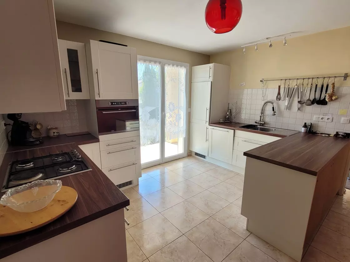 This villa sits on a 721 m2 plot and boasts 130 m2 of living space. The property comprises four bedrooms and two bathrooms, one conveniently located on the ground floor. The villa is set in a quiet residential area, ensuring privacy and tranquility. It features a heated swimming pool and a well-maintained garden that is easy to care for.