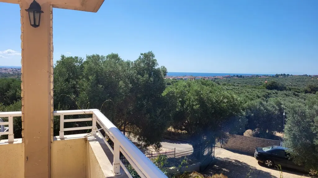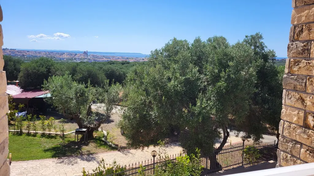 This maisonette offers views of the city and the sea from its windows. Several enhancements make the property more appealing, including solar panels for water heating, a fireplace for warmth, and awnings to provide shade.
