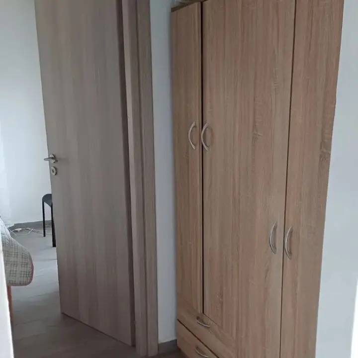The apartment includes four bedrooms, a living room combined with a kitchen, an additional separate kitchen, one bathroom, a shower WC, and a separate WC. Additionally, there is a storeroom for added convenience.