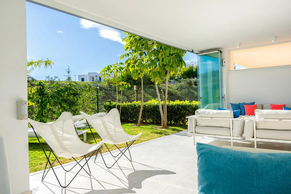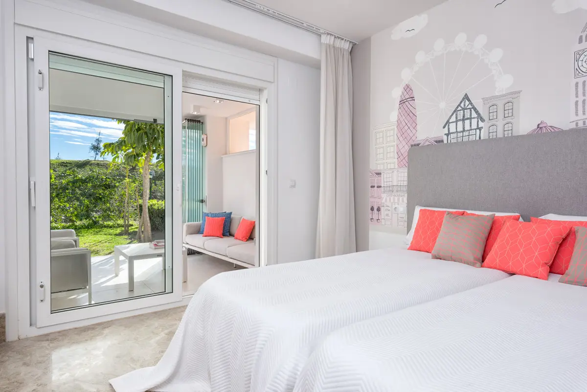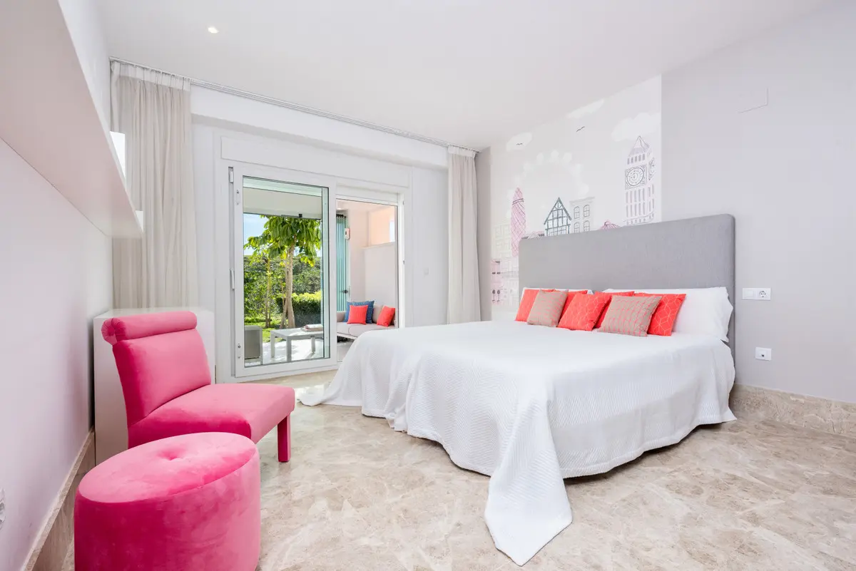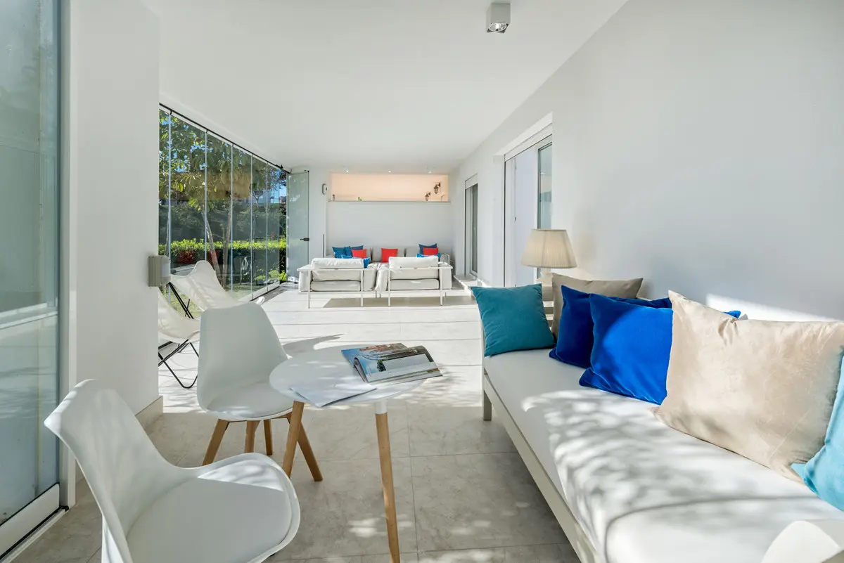 This is a contemporary villa situated within the Santa Clara Golf urbanization, located in the Los Monteros area of Marbella. This area is considered one of the most desirable parts of Marbella, positioned between the sea and the mountains. The property is surrounded by golf courses and is a short distance from some of the notable beaches along the Costa del Sol. It offers an environment that is both calm and refined, suitable for experiencing Marbella.