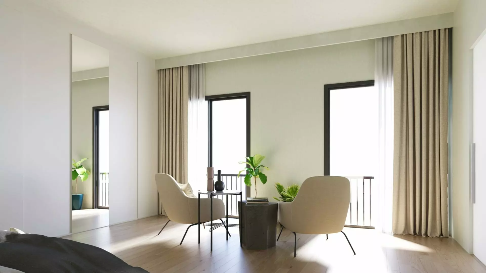 The house will consist of three double bedrooms. Two of the bedrooms will include ensuite bathrooms and dressing rooms, combining functionality with privacy. The architectural design emphasizes natural light, allowing for ample daylight throughout the property. Additionally, high-quality installations are planned to enhance the overall living experience.