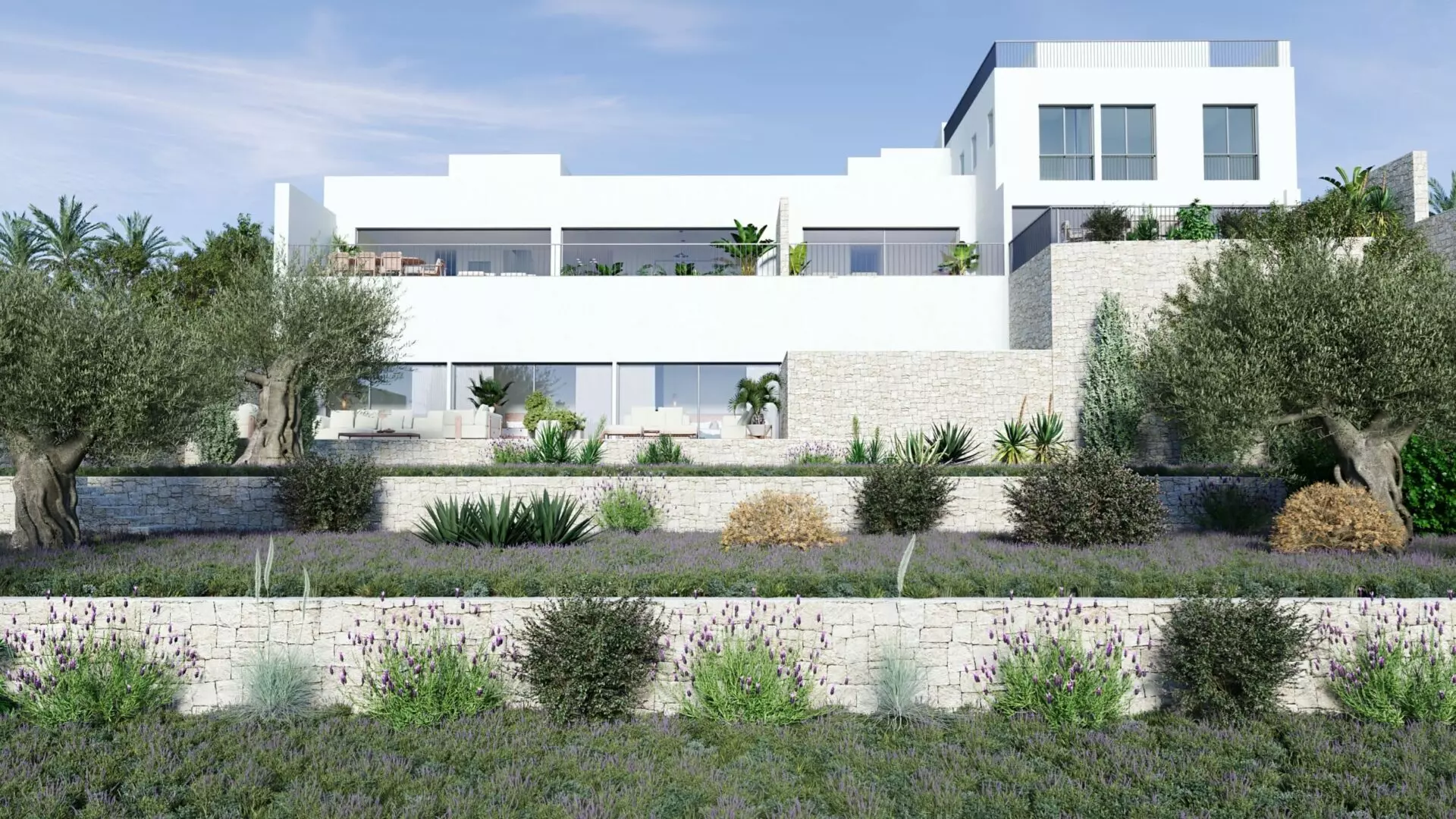This property is currently under construction and will feature a two-story layout upon completion. The design includes an open-plan kitchen, lounge, and dining area that connects seamlessly to a terrace designed for outdoor living. Notably, the terrace will host a swimming pool, offering open views of the surrounding countryside.