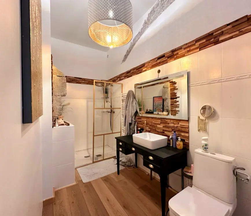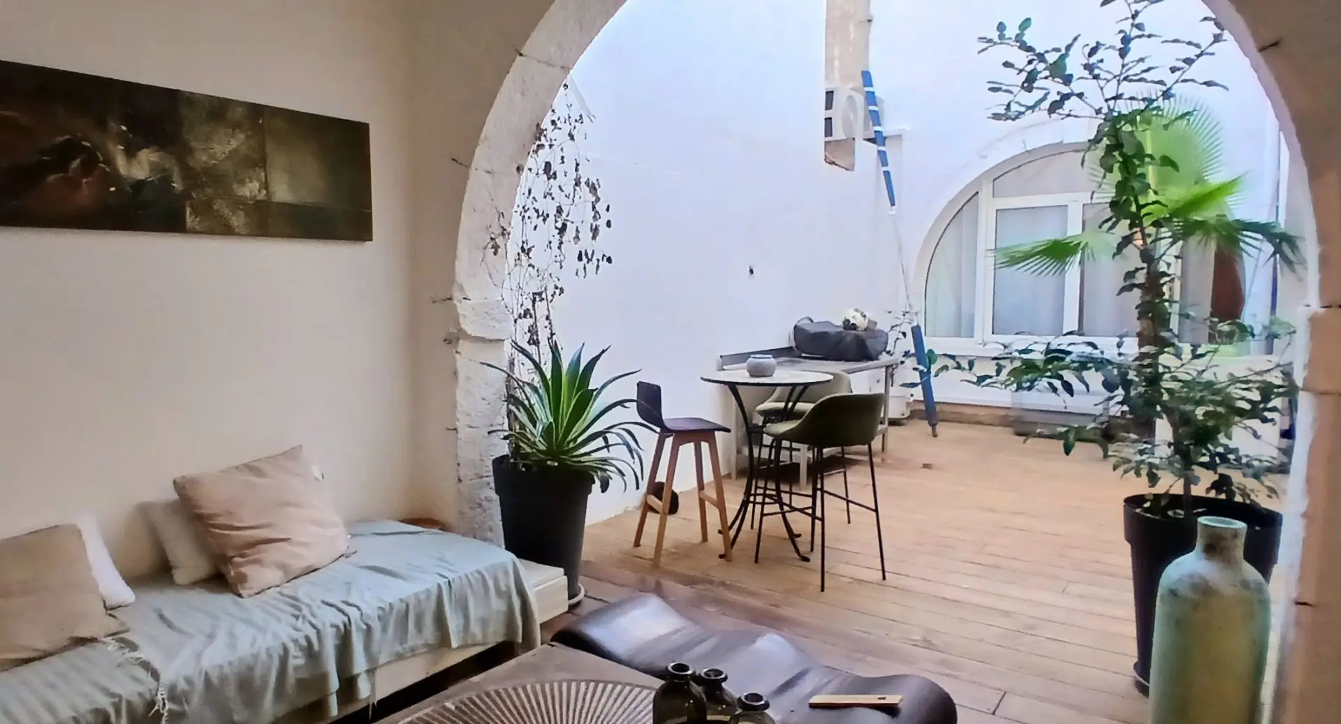 This contemporary ground-floor flat is part of a well-maintained building with only five units, ensuring a peaceful living environment for owners. With a total area of 155 m2, the flat boasts 3 to 4 bedrooms including a master suite, and 2 modern shower rooms. One standout feature is the expansive living room, which measures 60 m2 and is characterized by its stone arches, offering a unique ambiance and a fully-equipped open-plan kitchen that could meet various culinary needs.