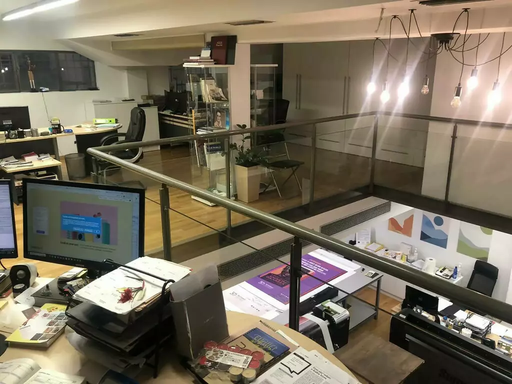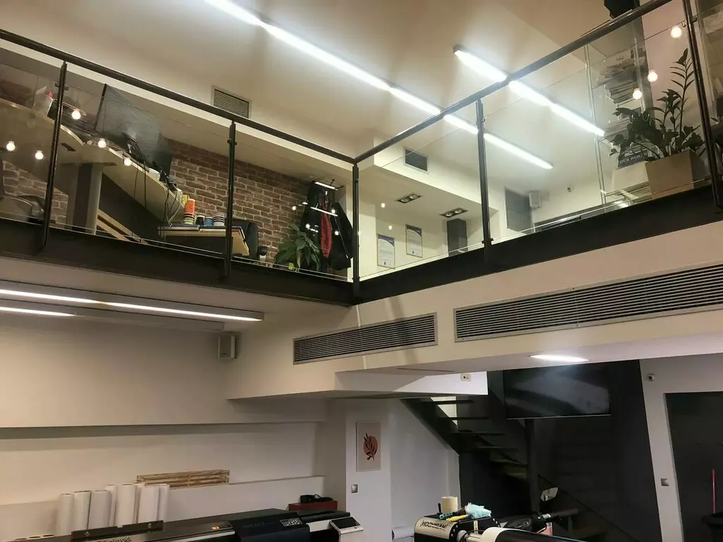 The ground floor includes two restrooms, ensuring convenience for both employees and customers. The space is equipped with air conditioning and heating, providing essential climate control throughout the year. Additionally, an alarm system has been installed for increased security.