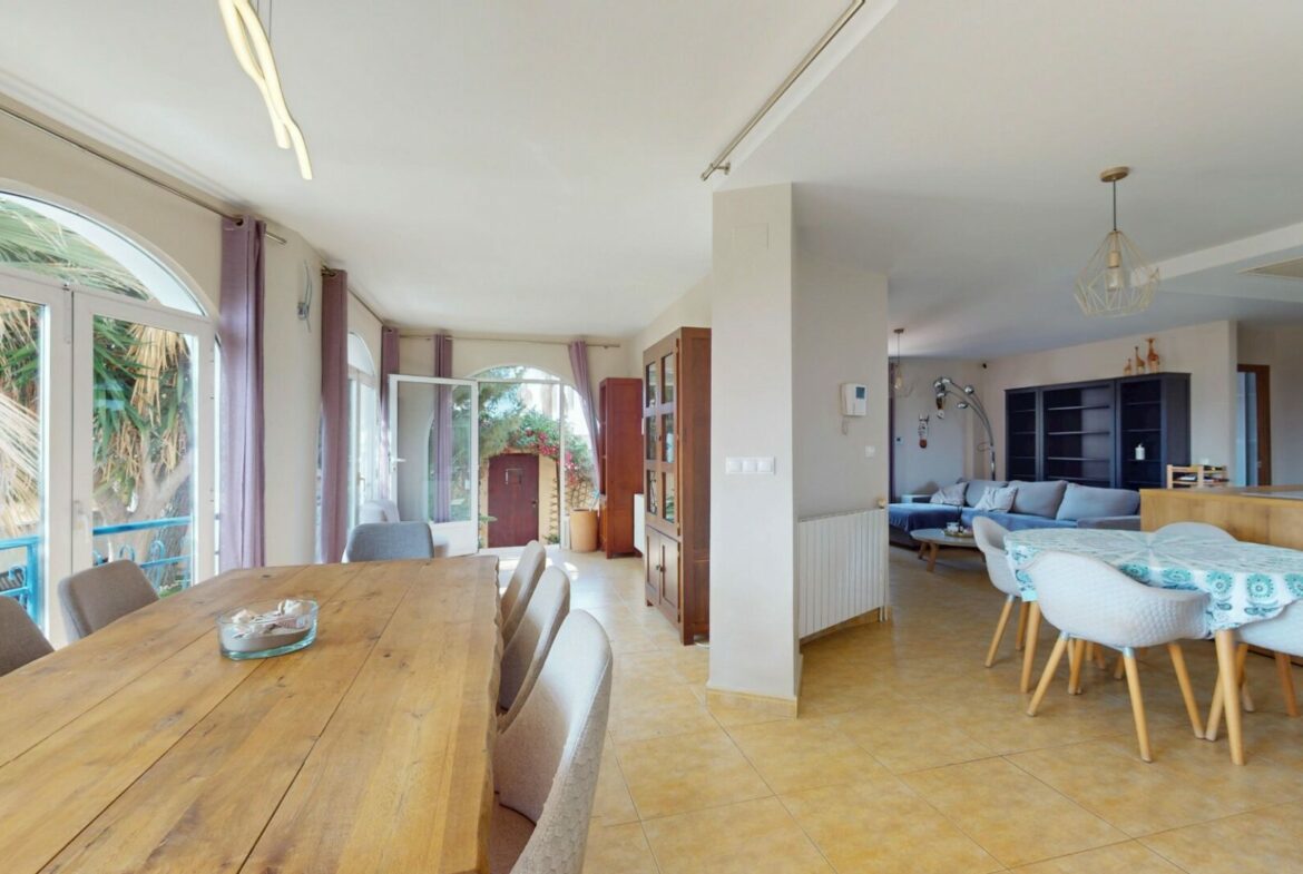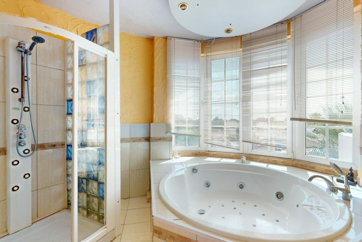 This villa in Orihuela Costa presents an opportunity for comfortable living on the Costa Blanca. With five full-sized bedrooms, it accommodates a variety of personal or family arrangements. Additionally, there are three complete bathrooms, highlighting one with a jacuzzi.