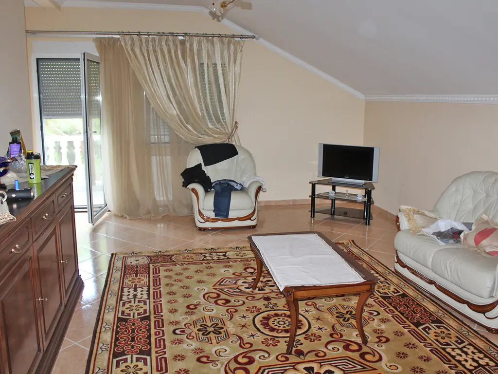 On the first floor, you will find two additional bedrooms along with another living room and two storerooms. This setup allows for versatile usage, whether as extra sleeping space, a home office, or additional storage for personal belongings.
