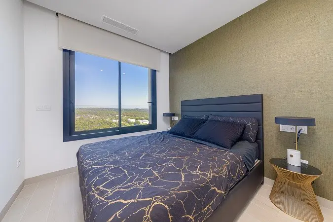 This two-bedroom penthouse apartment is located in the sought-after Las Colinas Golf Resort, directly adjacent to the well-known Campoamor Golf Course on the Costa Blanca. The area is conveniently located with San Miguel de Salinas just a short 10-minute drive, Villamartin approximately 15 minutes away, and the popular La Zenia Boulevard shopping center a mere 20-minute journey.