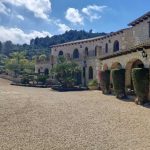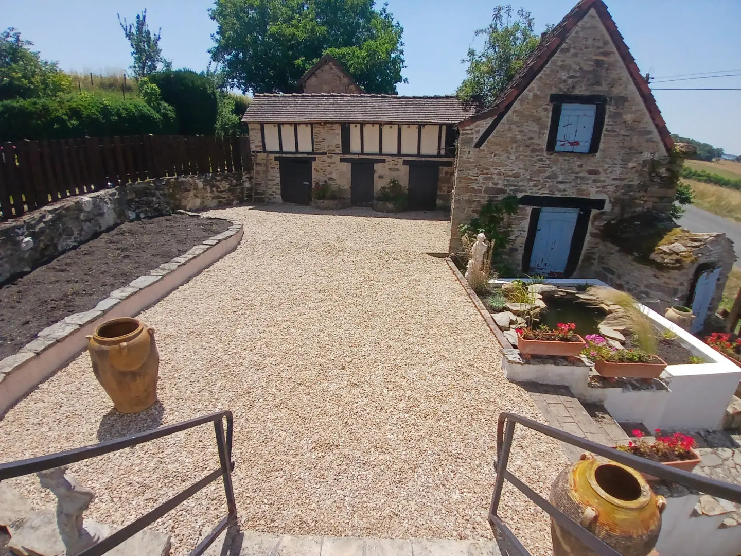 As you enter through the gate, you’ll find steps leading up to the courtyard, with a fish pond situated to the right. This courtyard houses two independent buildings and a well. One of these buildings serves as storage, while the other is an old bread oven that has been adapted to include a barbeque area. The courtyard offers views across the countryside, providing a nice spot for evening relaxation.