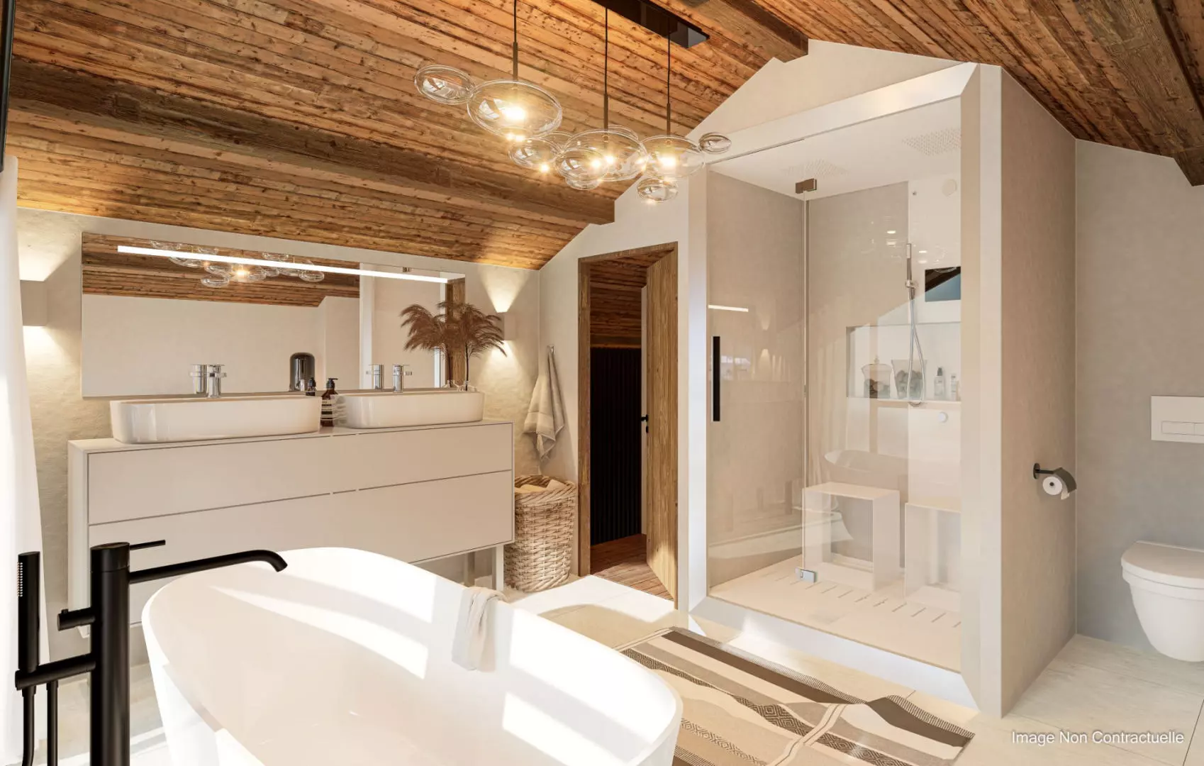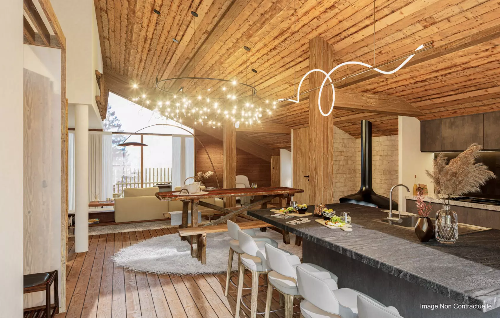 The architecture of L’Etoile d’Argent reflects a blend of traditional design and modern functionality. The wooden facades and balconies maintain the classic Alpine aesthetic, while the interiors showcase contemporary finishes that cater to today’s standards. The spaces are designed for both comfort and utility, with high-quality features throughout.