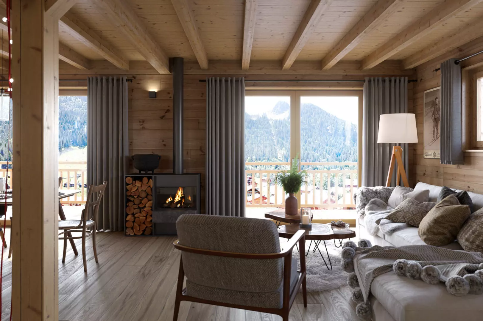The design includes traditional architectural features, with exposed beams and wooden balconies that reflect the regional style. The interiors focus on functionality and utility, providing ample room for daily activities. Each apartment features large south-facing balconies, providing views of the surrounding slopes and the valley. This can enhance the outdoor experience, making it easier to unwind after a day on the mountains.
