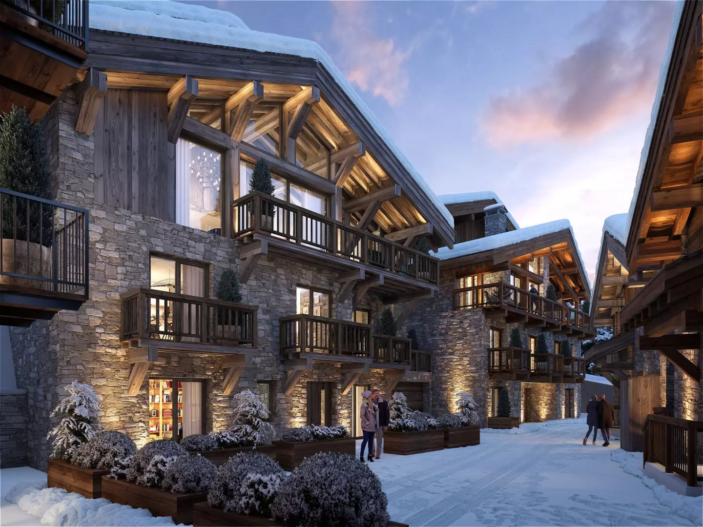 The convenience of this location is noteworthy, as it is just a short distance from the ski lift. This allows for straightforward access to the extensive Three Valleys ski domain, which is one of the largest in the world. Given that new-build opportunities are limited in this region, particularly in such a strategic area, this selection of properties stands out as a significant option.