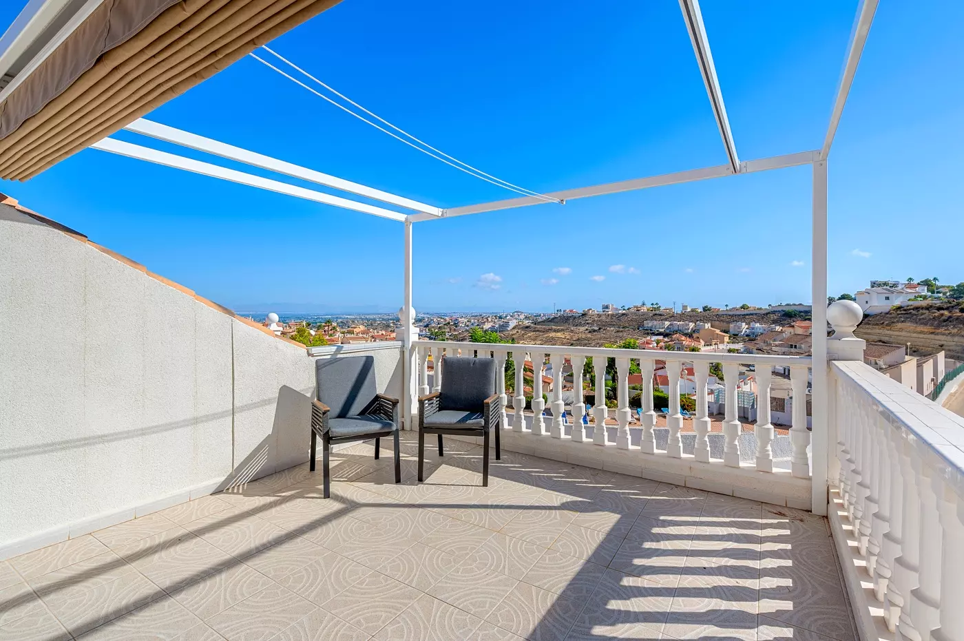 A semi-detached house in a residential complex with a communal pool is available for sale in Ciudad Quesada, located in La Marquesa Golf area. This property is set in a modern residential neighborhood, providing a tranquil and pleasant atmosphere.