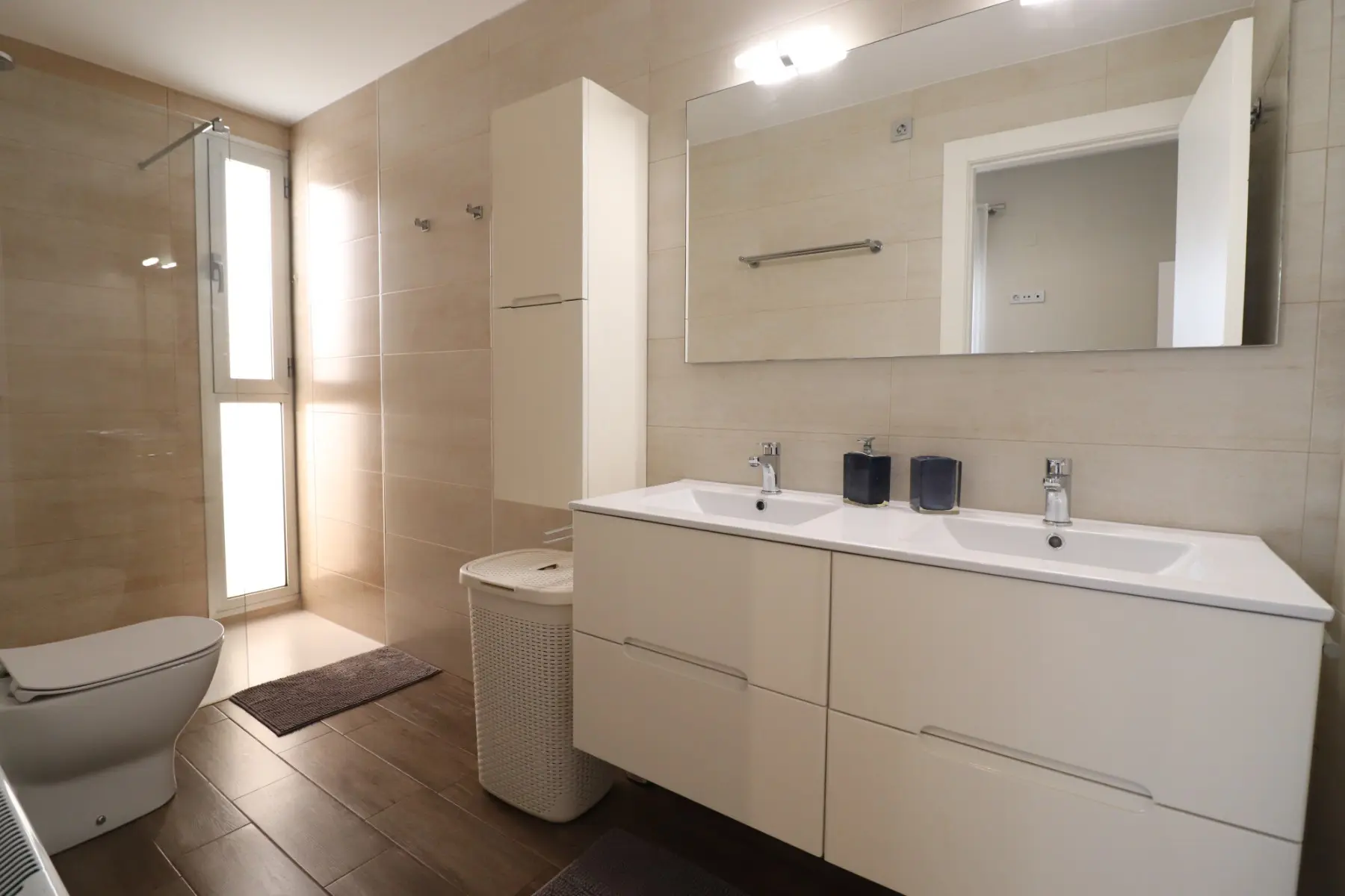 The open-plan kitchen is fully fitted and designed to accommodate family living and entertainment. All three double bedrooms come with air conditioning, ensuring comfort throughout the year.