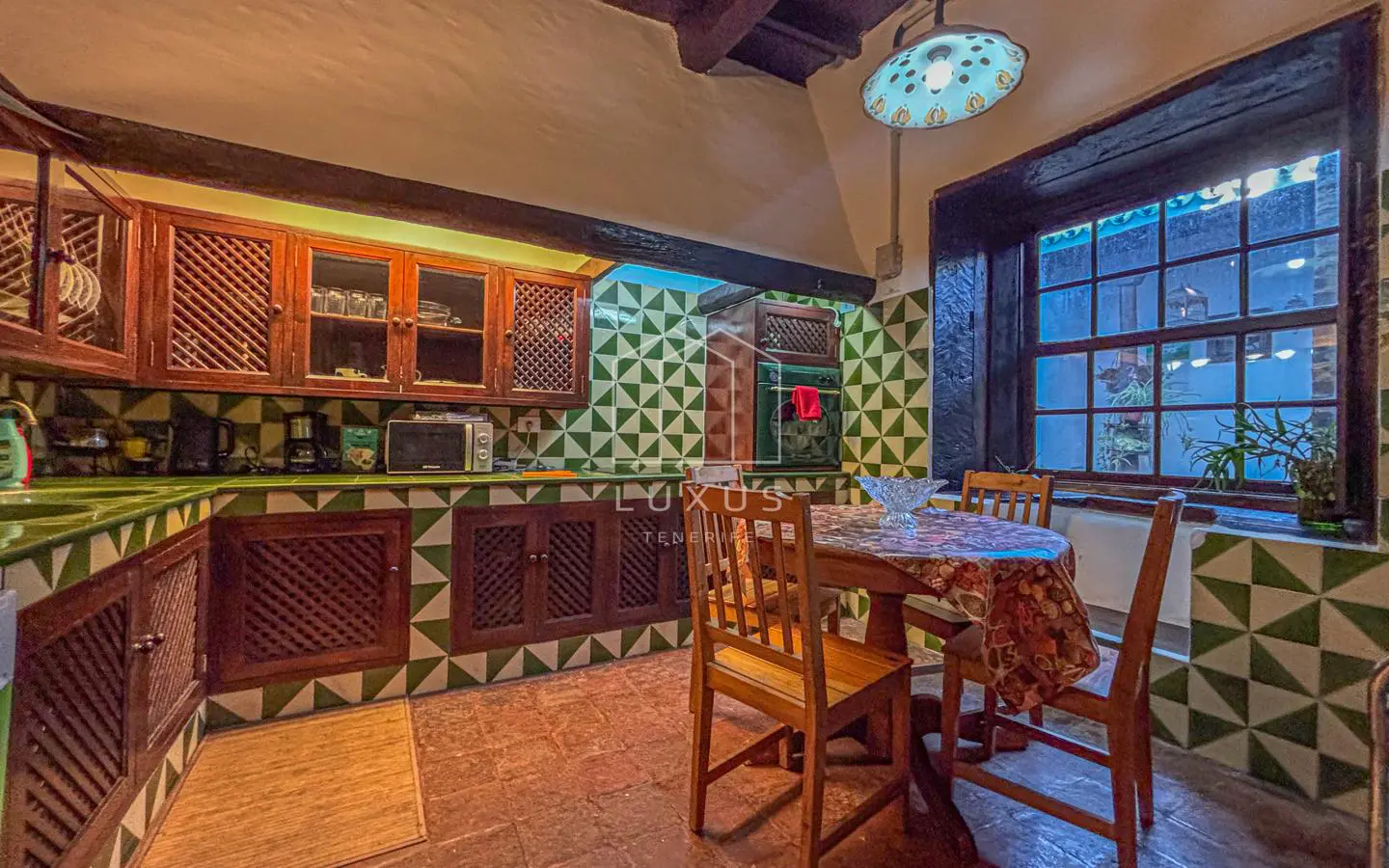 The house offers four bedrooms and three bathrooms, providing comfortable accommodation for family living or guests. Original architectural elements reflect the classic Canarian style, creating a warm and authentic atmosphere throughout the home.