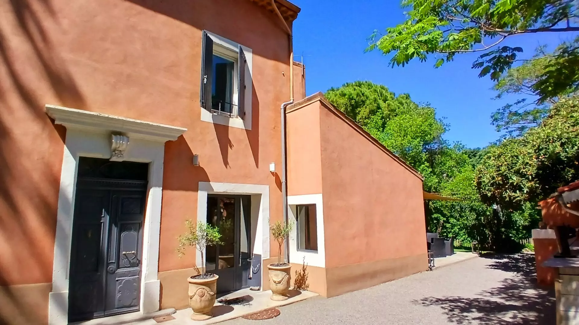 The property sits on 3,899 m² of landscaped grounds. The garden features various fruit trees, including oranges, lemons, cherries, figs, mandarins, and olives. A serene lower-level area showcases a lagoon-style pool, complemented by a spacious terrace that connects the indoor and outdoor spaces. For those who enjoy outdoor activities, there is a petanque court, a garden shed for cocktails, and ample private parking for more than 10 vehicles.