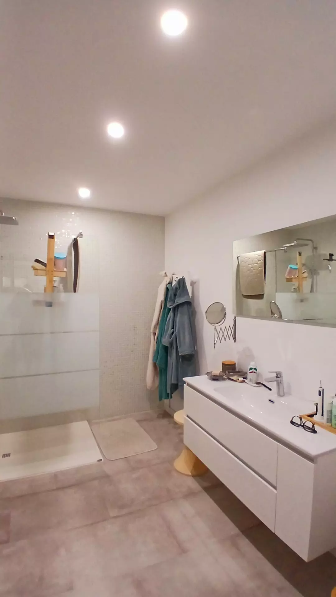Upon entering, you find a grand entry hall, which used to serve as the restaurant reception, measuring 16.85 m². The main living room spans 54 m² and has large glass doors that lead to the terrace. The master suite, which includes a terrace access and an en-suite bathroom with an Italian shower, adds a touch of convenience. The property’s first floor contains additional bedrooms, each equipped with their own en-suite bathrooms.