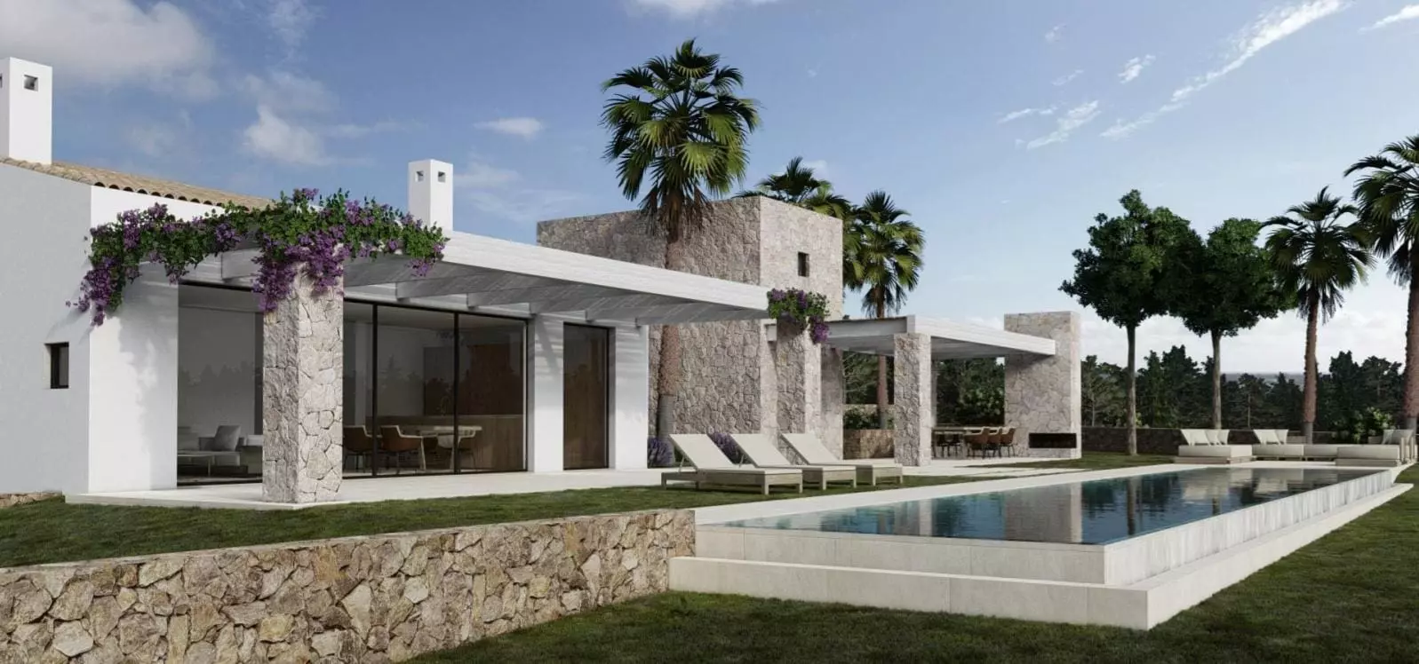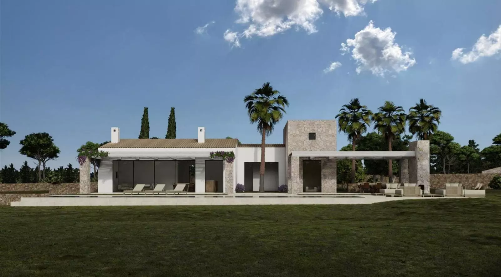 For sale is a new finca project located in Ses Salines, Mallorca, set in a rural plot exceeding 14,000 m². This property is situated between Ses Salines and Santanyí, offering a tranquil atmosphere and expansive views of the surrounding countryside and vineyards in the southeastern region of the island.