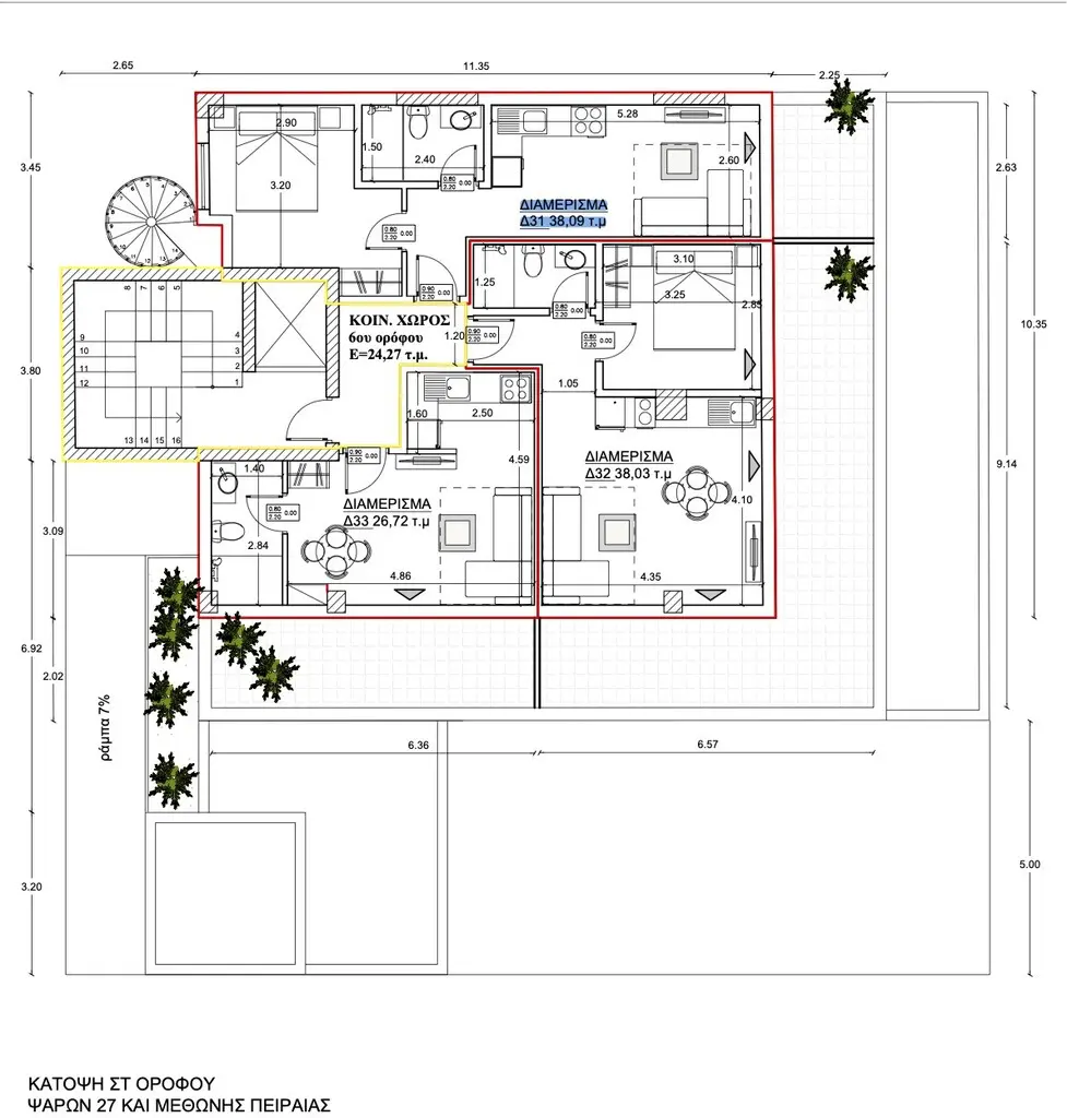 Discover an under construction apartment located in Athens, measuring 38 square meters. This property is positioned on the 7th floor, offering a unique perspective of the city through its double-fronted layout.