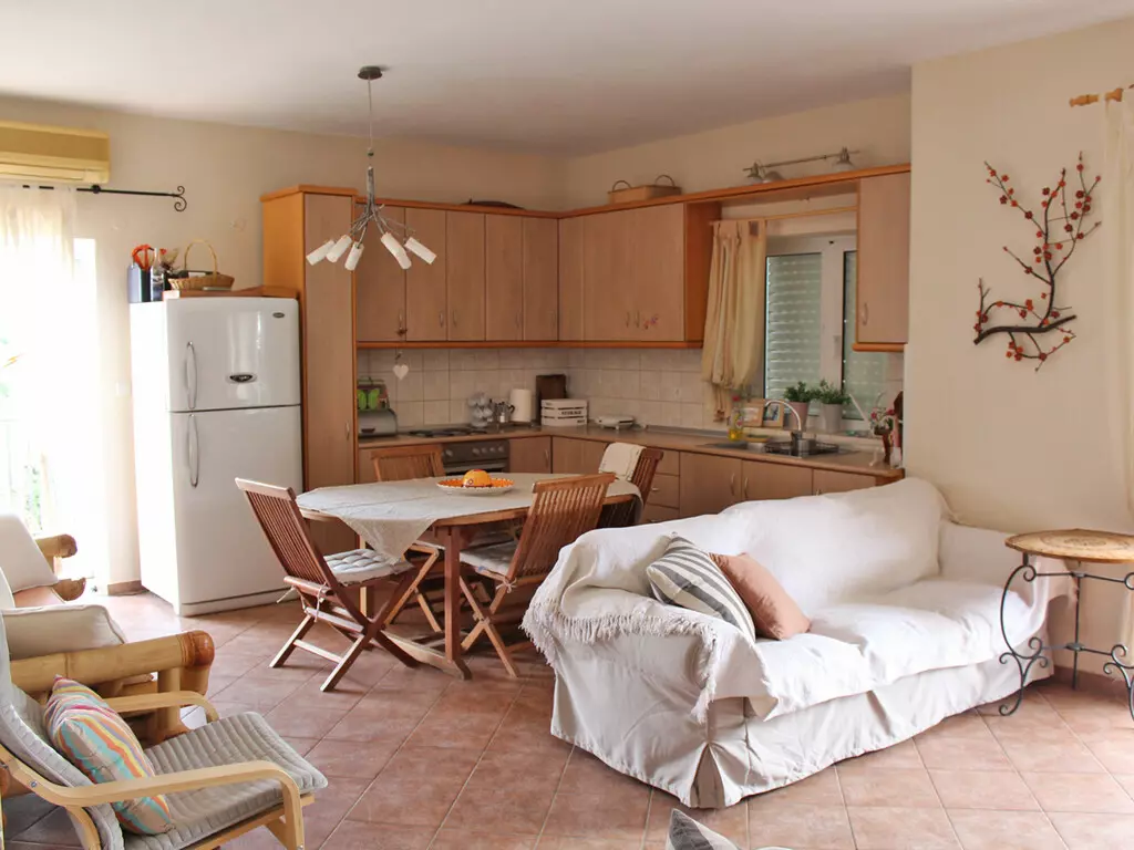 On the first floor, you will find three bedrooms, a living room that also includes kitchen facilities, along with two bathrooms. This configuration allows for a more private setting, ideal for larger families or rentals. The division of space supports diverse living arrangements.